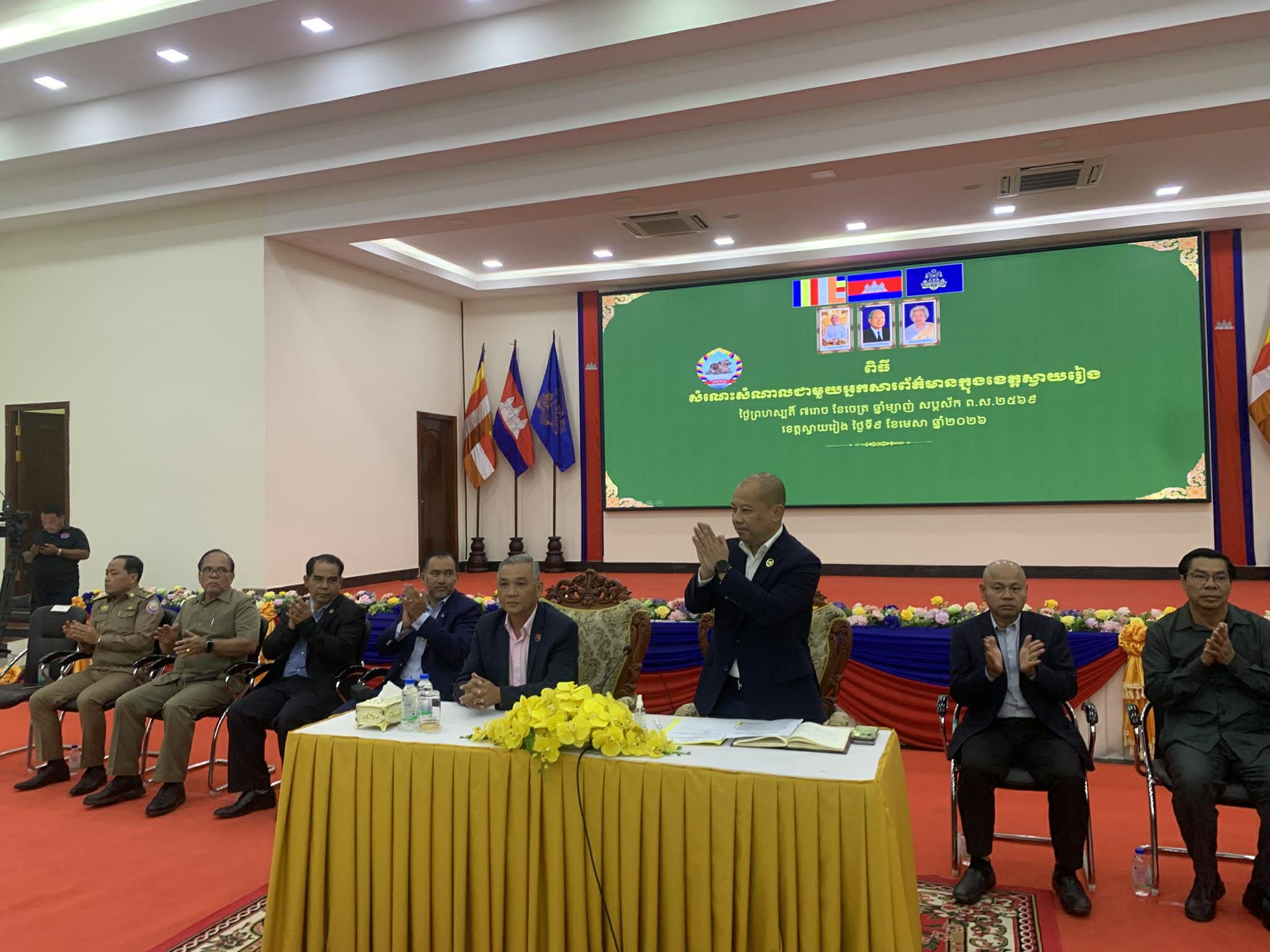 ខេត្តស្វាយរៀង ៖ លោក ប៉េង ពោធិ៍សា អភិបាល នៃគណៈអភិបាលខេត្តស្វាយរៀង និងលោក ឡុង សេង អនុរដ្ឋលេខាធិការក្រសួងពត៌មាន តំណាងដ៏ខ្ពង់ខ្ពស់ឯកឧត្តម នេត្រ ភក្ត្រា រដ្ឋមន្ត្រីក្រសួងព័ត៌មាន បានអញ្ជើញក្នុងពិធីជួបសំណេះសំណាលជាមួយអ្នកសារព័ត៌មាន ក្នុងខេត្តស្វាយរៀង អបអរសាទរពិធីបុណ្យចូលឆ្នាំថ្មី ប្រពៃណីជាតិខ្មែរ។ ពីធីនេះ បានប្រារព្ធឡើងនៅវេលាម៉ោង២និង៣០នាទីរសៀលថ្ងៃទី០៩ មេសា ២០២៦ នៅសាលប្រជុំអាគារ ឃ សាលាខេត្តស្វាយរៀង ។