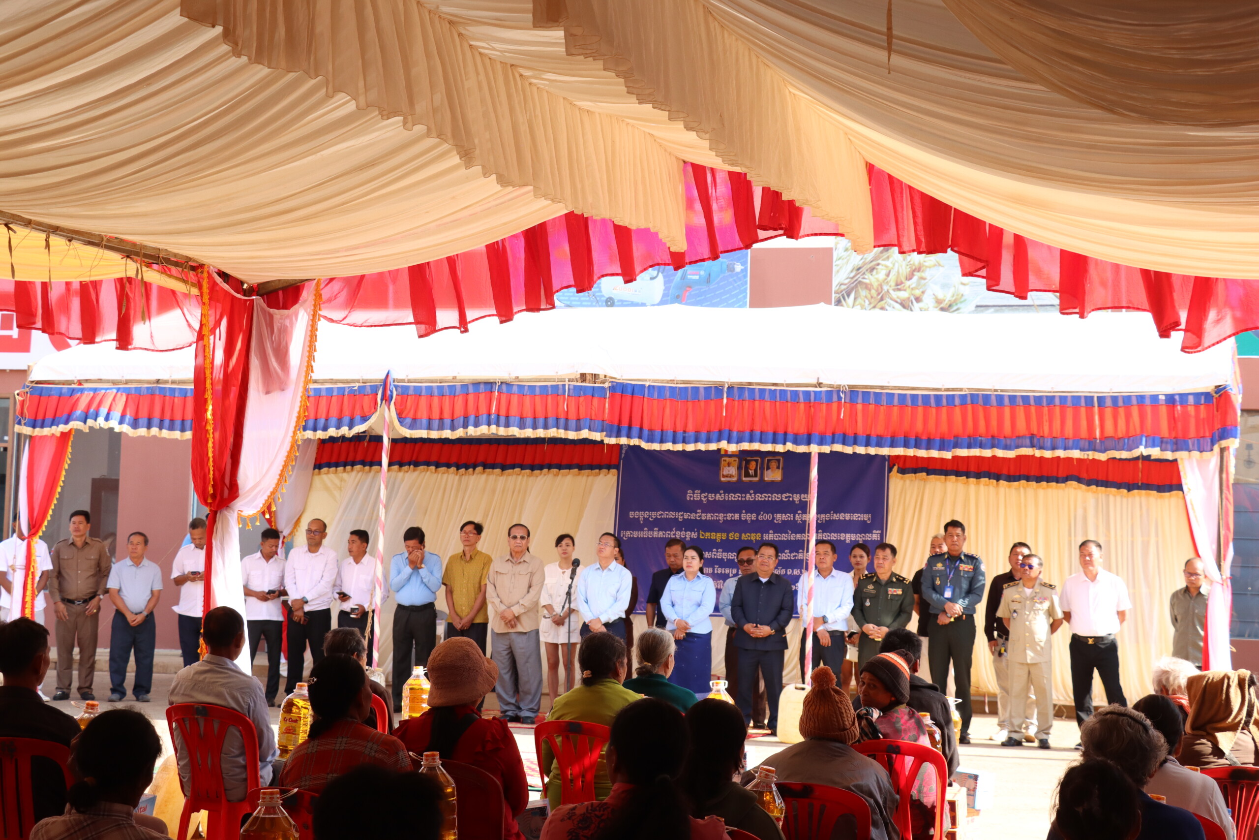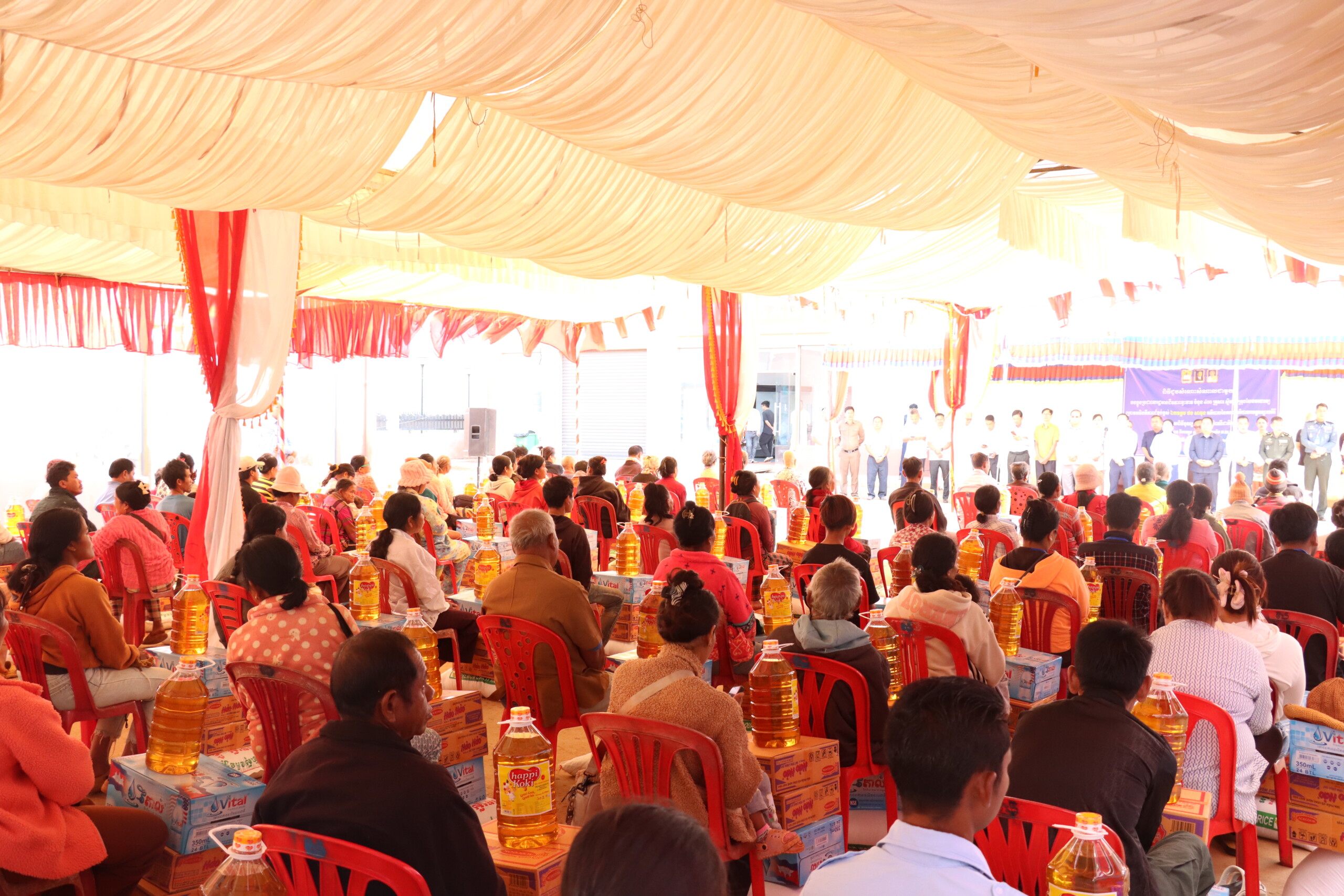 ឯកឧត្តមអភិបាលខេត្ត រួមជាមួយគណៈអធិបតី បានអញ្ជើញផ្តល់អំណោយជាគ្រឿងឧបភោគបរិភោគ ថវិកា និងសម្ភារៈចាំបាច់មួយចំនួន ដែលជាការឧបត្ថម្ភពីក្រុមហ៊ុន ម៉ឹង ទ័រ ជី លី ហ្សុងហ្គូ ស៊ាងម៉ៅ ឆេង ដើម្បីជូនដល់ប្រជាពលរដ្ឋដែលបានចូលរួមដើម្បីសម្រាលបន្ទុកជីវភាពបានមួយកម្រិត ៕