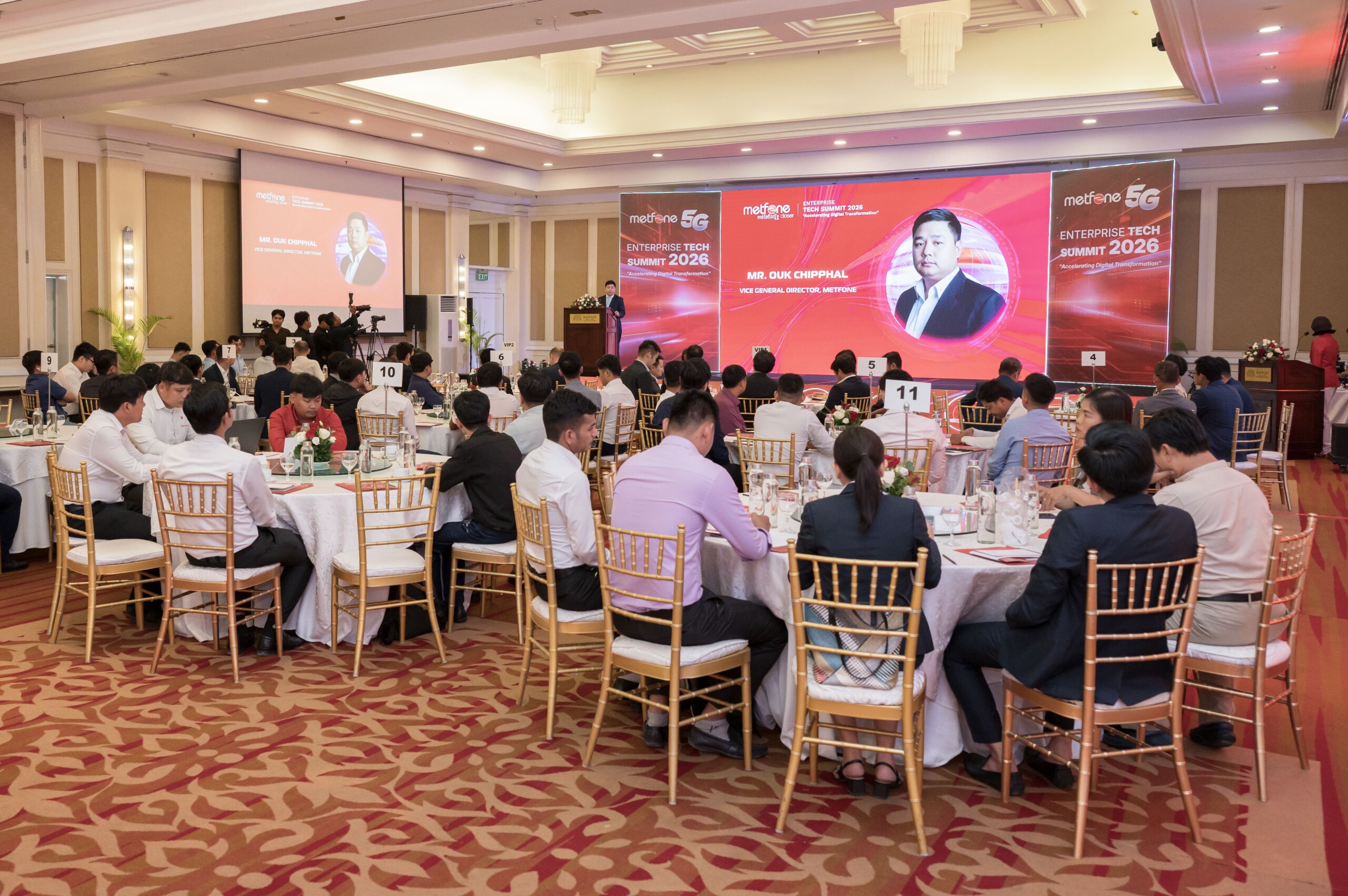 រាជធានីភ្នំពេញ ៖ កាលពីថ្ងៃទី ៨ ខែមេសា ឆ្នាំ ២០២៦ នៅសណ្ឋាគារ រ៉ាហ្វល ភ្នំពេញ ក្រុមហ៊ុន មិត្តហ្វូន បានរៀបចំកម្មវិធីមហាសន្និបាតបច្ចេកវិទ្យាសហគ្រាសមិត្តហ្វូន ឆ្នាំ ២០២៦ (Metfone Enterprise Tech Summit 2026) ដោយមានការចូលរួមពីតំណាងធនាគារ គ្រឹះស្ថានមីក្រូហិរញ្ញវត្ថុ (MFIs) ដៃគូបច្ចេកវិទ្យា និងអ្នកជំនាញឈានមុខគេក្នុងវិស័យ AI ទិន្នន័យ និងហេដ្ឋារចនាសម្ព័ន្ធឌីជីថលយ៉ាងច្រើនកុះករ ។