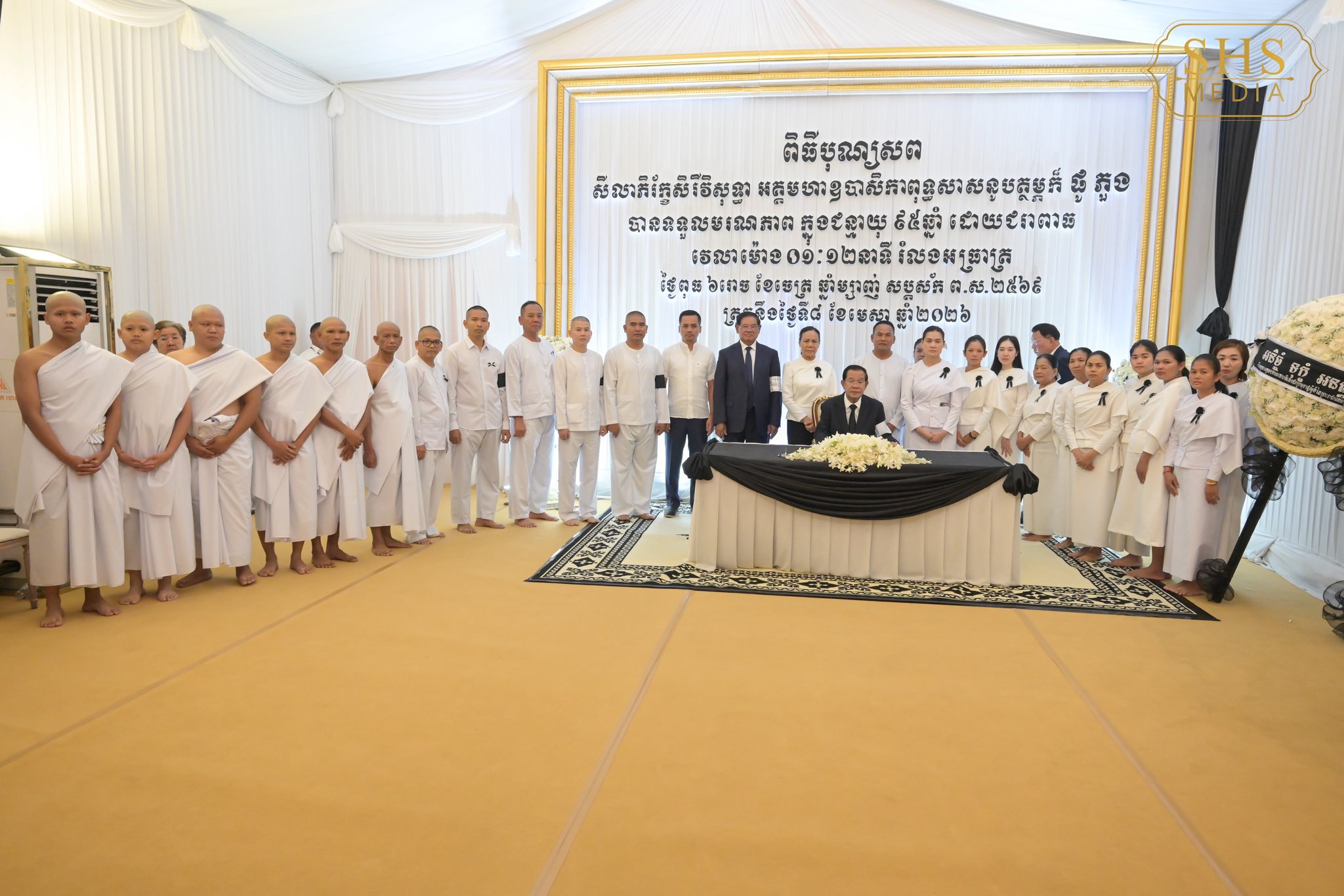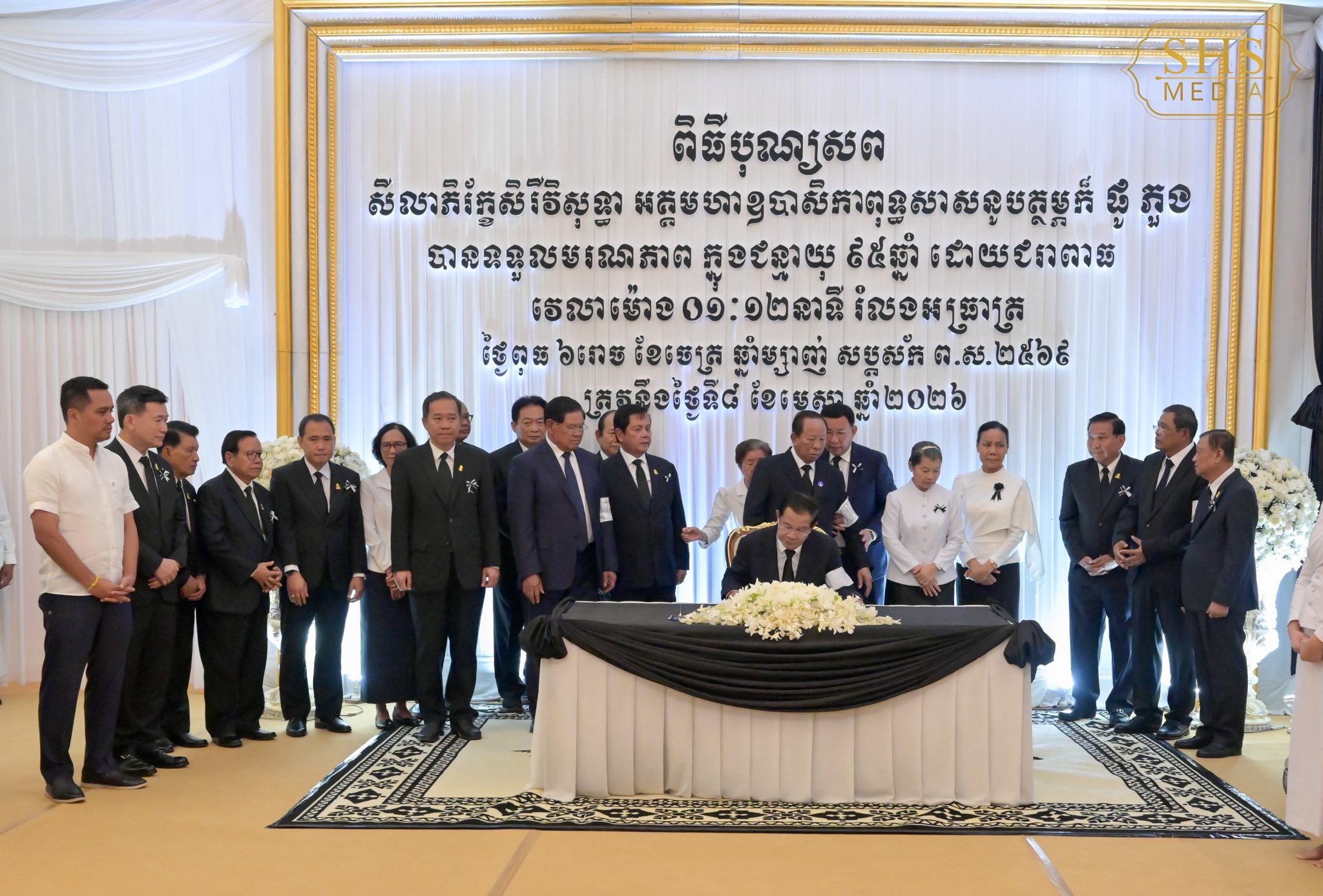 រាជធានីភ្នំពេញ ៖ នារសៀលថ្ងៃសៅរ៍ ទី១១ ខែមេសា ឆ្នាំ២០២៦ សម្តេចអគ្គមហាសេនាបតីតេជោ ហ៊ុន សែន ប្រមុខរដ្ឋស្តីទី នៃព្រះរាជាណាចក្រកម្ពុជា អញ្ជើញគោរពវិញ្ញាណក្ខន្ធ មហាឧបាសិកាពុទ្ធសាសនូបត្ថម្ភក៍ ផូ ភួង ដែលត្រូវជាម្តាយបង្កើតឯកឧត្តមនាយឧត្តមសេនីយ៍ ស ថេត អគ្គស្នងការនគរបាលជាតិ ដែលបានទទួលមរណភាព កាលពីថ្ងៃពុធ ទី៨ ខែមេសា ឆ្នាំ២០២៦ ក្នុងជន្មាយុ ៩៥ឆ្នាំ ដោយរោគាពាធ ។