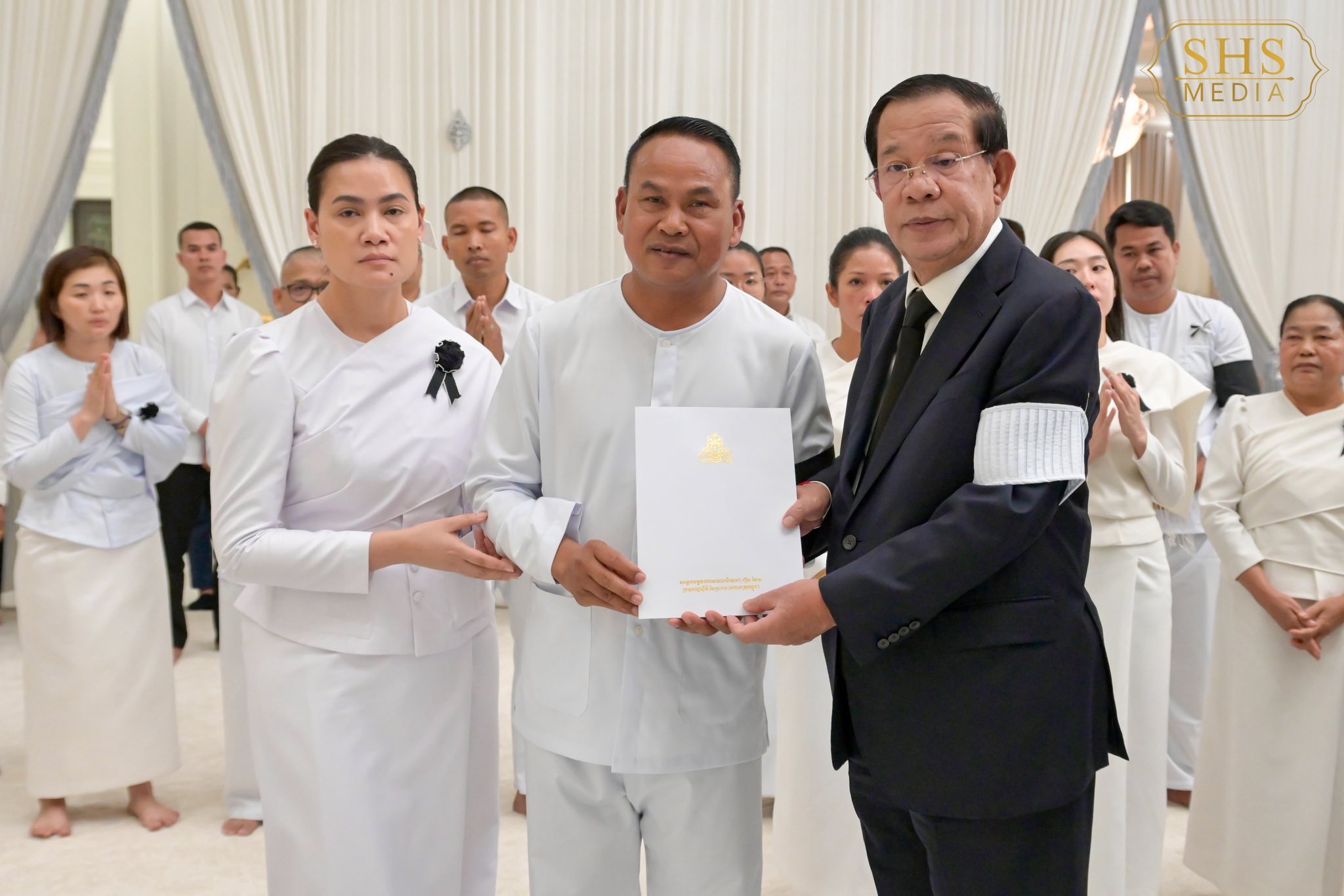 សម្តេចតេជោ ហ៊ុន សែន ក៏បានអញ្ជើញចារលើក្រាំងមាសរំលែកទុក្ខដល់ក្រុមគ្រួសារមហាឧបាសិកាពុទ្ធសាសនូបត្ថម្ភក៍ ផូ ភួង ៕