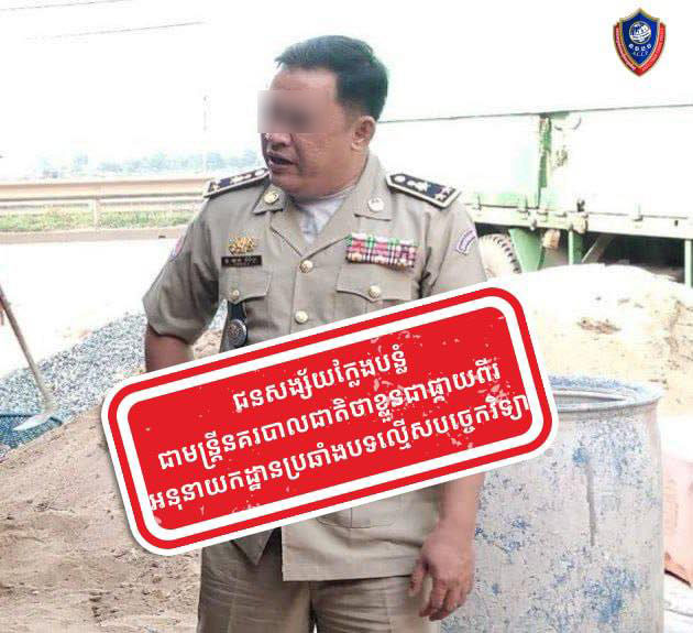 រាជធានីភ្នំពេញ ៖ យោងតាមបញ្ជាដឹកនាំរបស់នាយឧត្ដមសេនីយ៍ ស ថេត អគ្គស្នងការនគរបាលជាតិ និងតាមការចង្អុលណែនាំពីឧត្ដមសេនីយ៍ឯក អគ្គស្នងការរងនគរបាលជាតិ កាលពីថ្ងៃទី០៩ ខែមេសា ឆ្នាំ២០២៦ នាយកដ្ឋានប្រឆាំងបទល្មើសបច្ចេកវិទ្យា បានបើកការស្រាវជ្រាវ និងបង្ក្រាបលើករណីក្លែងបន្លំជាមន្ត្រីនគរបាលជាតិ មានឋានន្តរស័ក្តិផ្កាយ២ (ឧត្តមសេនីយ៍ទោ) ជាអនុប្រធាននាយកដ្ឋានប្រឆាំងបទល្មើសបច្ចេកវិទ្យា បានធ្វើសកម្មភាពឆបោកប្រាក់ជនរងគ្រោះ ក្រោមរូបភាពរត់ការចូលក្របខ័ណ្ឌនគរបាលជាតិ ។