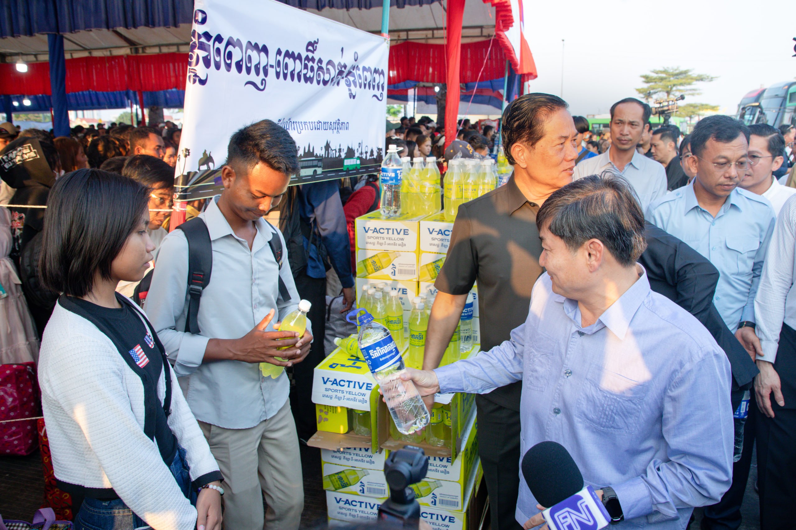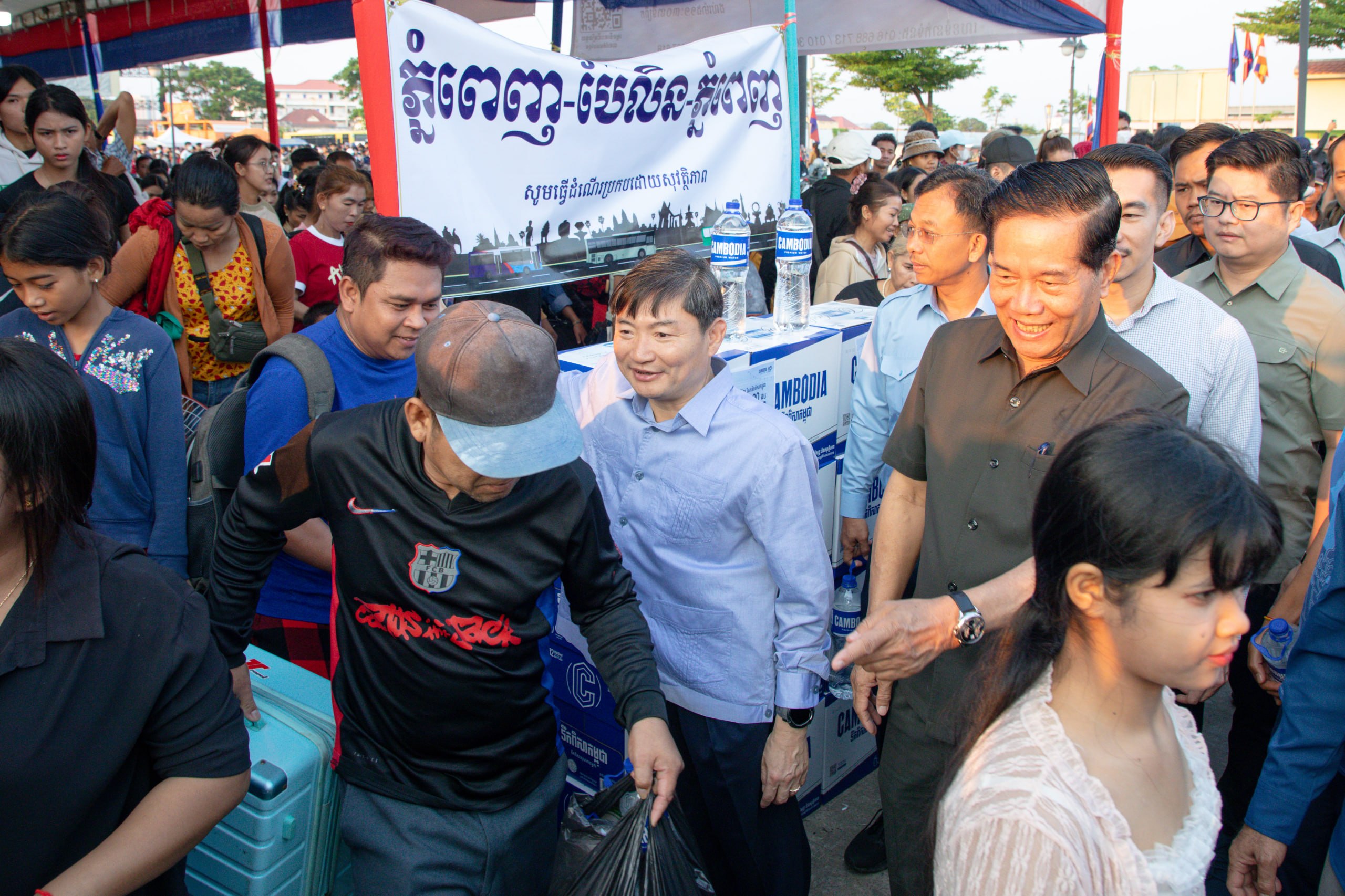 រាជធានីភ្នំពេញ ៖ ឯកឧត្តម ហេង សួរ រដ្ឋមន្ត្រីក្រសួងការងារ និងបណ្ដុះបណ្ដាលវិជ្ជាជីវៈ និងឯកឧត្តម ឃួង ស្រេង អភិបាលនៃគណៈអភិបាលរាជធានីភ្នំពេញ បានអញ្ជើញជូនដំណើរបងប្អូនកម្មករនិយោជិត និងប្រជាពលរដ្ឋធ្វើដំណើរទៅលេងស្រុកកំណើត តាមមធ្យោបាយរថយន្តក្រុងរបស់រដ្ឋបាលរាជធានីភ្នំពេញដោយមិនគិតថ្លៃ នាព្រឹកថ្ងៃអាទិត្យ ទី១២ ខែមេសា ឆ្នាំ ២០២៦ នេះ នៅទីលានប្រជាធិបតេយ្យ ស្ថិតក្នុងខណ្ឌឫស្សីកែវ ដែលអនុវត្តតាមអនុសាសន៍ដ៏ខ្ពង់ខ្ពស់របស់សម្ដេចមហាបវរធិបតី ហ៊ុន ម៉ាណែត នាយករដ្ឋមន្ត្រី នៃព្រះរាជាណាចក្រកម្ពុជា ។