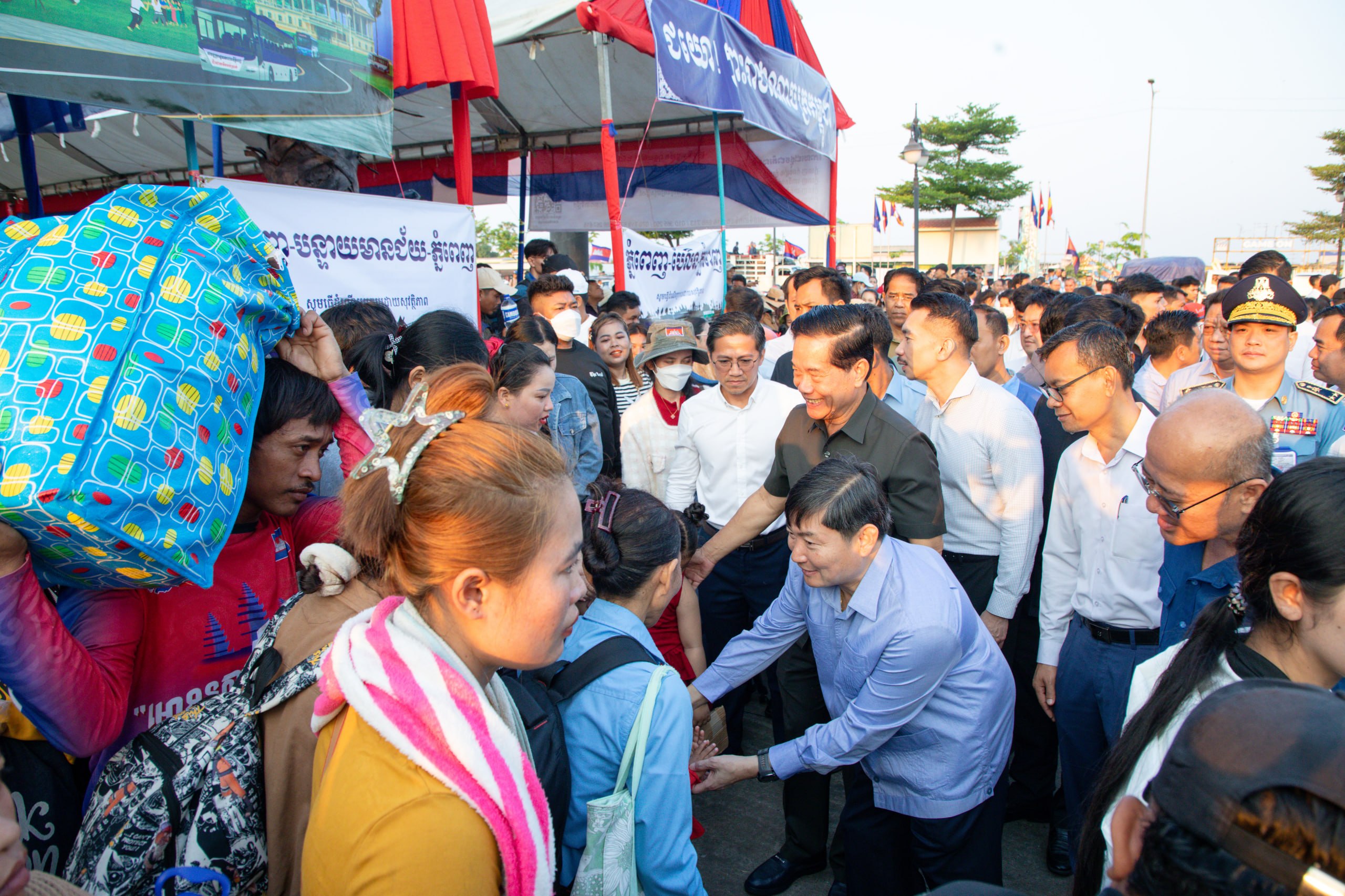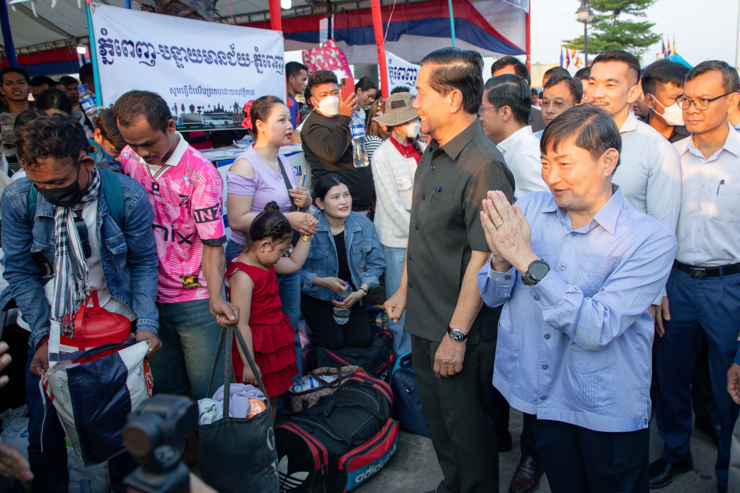 នាឱកាសនោះ បងប្អូនកម្មករនិយោជិតនិងប្រជាពលរដ្ឋបានសម្តែង នូវក្តីសប្បាយរីករាយ និងថ្លែងអំណរគុណដ៏ជ្រាលជ្រៅ ជូនចំពោះសម្តេចធិបតី និងលោកជំទាវបណ្ឌិត រដ្ឋបាលរាជធានី ដែលបានជួយដោះស្រាយ ផ្តល់មធ្យោបាយបានទៅលេងស្រុកកំណើត ក្នុងខណ:ថ្លៃធ្វើដំណើរឡើងថ្លៃខ្ពស់ដោយសារវិបត្តិប្រេងឥន្ធន: ។