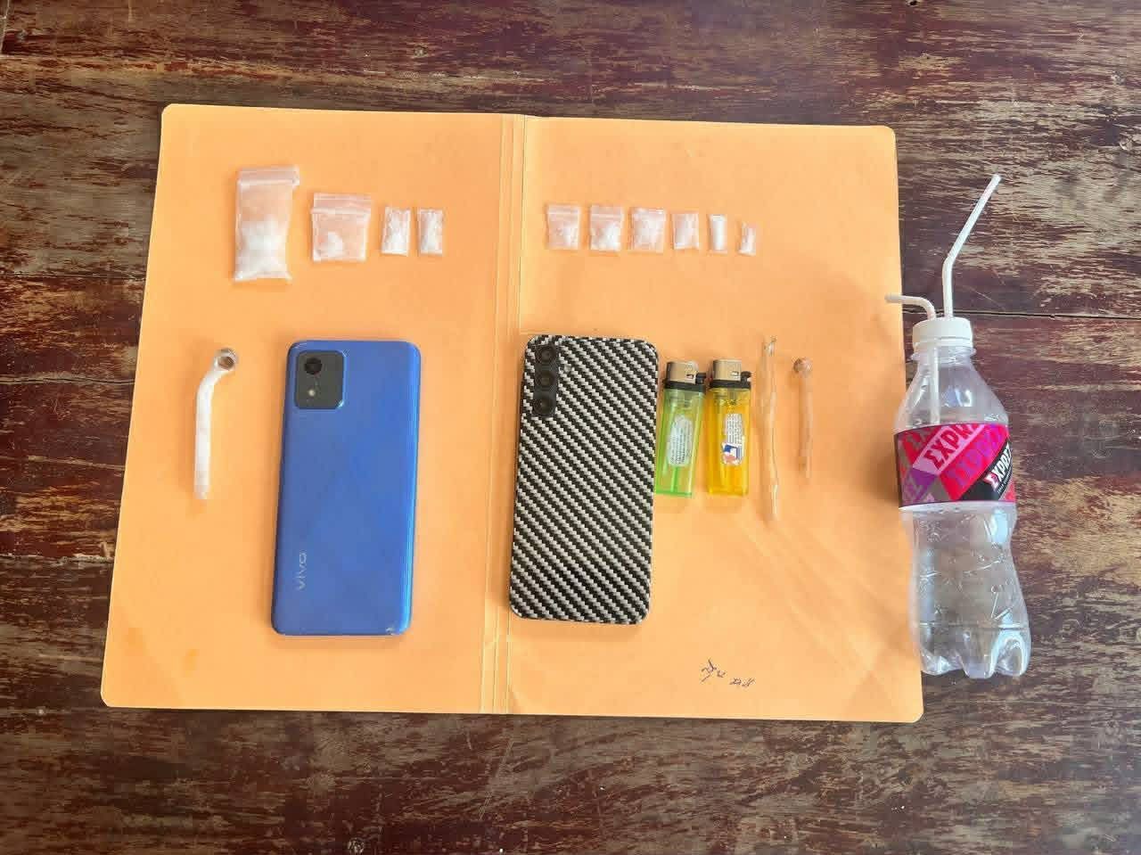 ដោយមានការសម្របសម្រួលពីឯកឧត្តមព្រះរាជអាជ្ញា កើត វណ្ណារ៉េត នៅថ្ងៃទី១១ ខែមេសា ឆ្នាំ២០២៦ វេលាម៉ោង៩:០០នាទី កម្លាំងជំនាញនៃអធិការដ្ឋាននគរបាលស្រុកស្វាយចេកបានទៅដល់ចំណុចផ្ទះរបស់ឈ្មោះខាងលើ បានធ្វើការត្រួតពិនិត្យ ១-ឈ្មោះ ប៉ុប ពឿត ភេទប្រុស អាយុ២១ឆ្នាំ (ត្រួតពិនិត្យរកឃើញបំពង់កែវសម្រាប់ជក់១ដើម) ២-ឈ្មោះ ស៊ឹម ធារ៉ា ភេទប្រុស អាយុ២៧ឆ្នាំ ៣-ឈ្មោះ អុល ឃុនរី (ហៅពៅ) ភេទស្រី អាយុ៣៧ឆ្នាំ នៅភូមិចំការគ ឃុំស្វាយចេក ស្រុកស្វាយចេក ត្រួតពិនិត្យរកឃើញម្សៅក្រាមពណ៌សរថ្លា(សង្ស័យសារធាតុញៀន)ចំនួន៦ថង់តូច បំពង់កែវសម្រាប់ជក់១ដើម ដែកកេះ២ដើម ដបកែច្នៃសម្រាប់ជក់១ដប។