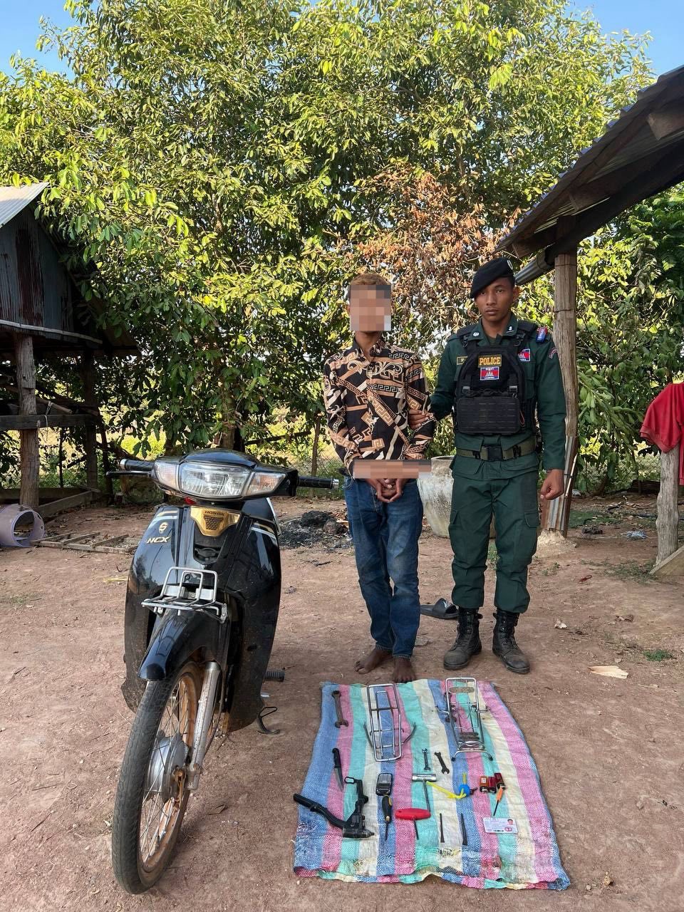 ក្រោយកើតហេតុ កម្លាំងសមត្ថកិច្ចបានទំនាក់ទំនងជាមួយជនរងគ្រោះ ឈ្មោះ ខុម សារ៉ាឌី ភេទប្រុស អាយុ៣៧ឆ្នាំ រស់នៅភូមិឃុំខាងលើ ដោយម៉ូតូខាងលើមានភ្ជាប់ប្រព័ន្ធ (GPS) ក៏បានតាមរកនឹងឆែកមើលឃើញ នៅចំណុចភូមិថ្មី សង្កាត់ត្រាចទង ក្រុងឧដុង្គម៉ែជ័យ ខេត្តកំពង់ស្ពឺ និងបានឃាត់ខ្លួនជនសង្ស័យ០១នាក់ ឈ្មោះ ឡោះ ប៊ុនលី ភេទប្រុស អាយុ២៧ឆ្នាំ រស់នៅភូមិថ្មី សង្កាត់ត្រាចទង ក្រុងឧដុង្គម៉ែជ័យ ខេត្តកំពង់ស្ពឺ ដែលជាអ្នកធ្វើសកម្មភាពលួចម៉ូតូរបស់ជនរងគ្រោះ ។