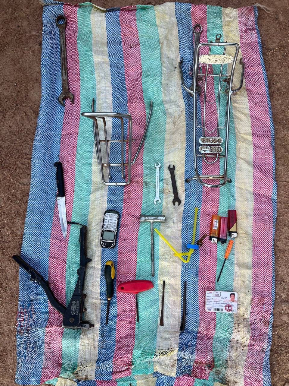 ចំពោះការដកហូតវត្ថុតាងបានមាន: ម៉ូតូ០១គ្រឿង ម៉ាកសង់C125ពណ៌ខ្មៅ សេរីឆ្នាំ២០២៦ (ប្រគល់ជូនជនរងគ្រោះវិញ), ដែកកែច្នៃសម្រាប់កាច់ករម៉ូតូ០៥ដើម ,កូនសោរសម្រាប់ដោះខ្ចៅ០៤ដើម, រៀនម៉ូតូមុខក្រោយ ចំនួន០២ ,កូនកាំបិតចុងស្រួច០១ដើម,ប្រដាប់កឹបផ្លាកលេខ ម៉ូតូ០១ដើម,កាតគ្រីម៉ូតូ០១សន្លឹក,ម៉ារវេនម៉ូតូ០១ដើម,ឧបករណ៍កែច្នៃសម្រាប់ប្រើម្រាស់គ្រឿងញៀ.នមួយចំនួន។