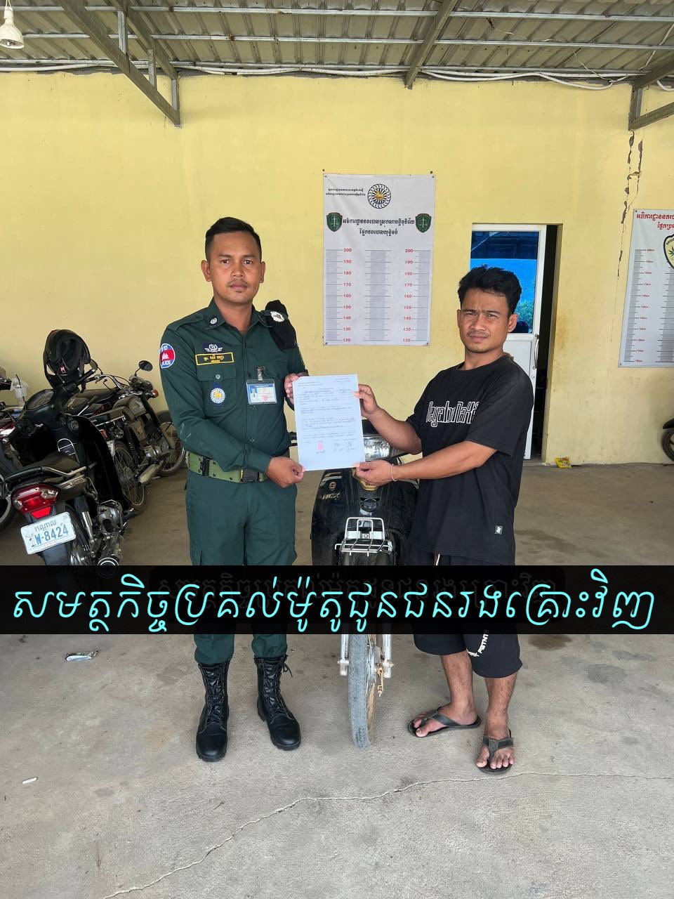 ដោយអនុវត្តតាមការដឹកនាំបញ្ជាដ៏ខ្ពង់ខ្ពស់ ពីលោកឧត្ដមសេនីយ៍ទោ ឃឹម សុកខៃ ស្នងការនគរបាលខេត្តកំពង់ស្ពឺ កម្លាំងអធិការដ្ឋាននគរបាលស្រុកសាមគ្គីមុនីជ័យ នៅថ្ងៃទី១១ ខែមេសា ឆ្នាំ២០២៦ វេលាម៉ោង១៩និង១០នាទី នៅចំណុវផ្លូវលំ ស្ថិតនៅភូមិត្រពាំងខ្នារ ឃុំយុទ្ធសាមគ្គី ស្រុកសាមគ្គីមុនីជ័យ បង្កដោយជនសង្ស័យមិនស្គាល់អតសញ្ញាណបានលួចយកម៉ូតូម៉ាកសង់ C125 ពណ៌ខ្មៅ សេរីឆ្នាំ២០២៦ ពាក់ផ្លាកលេខភ្នំពេញ 1LH-3679 ។