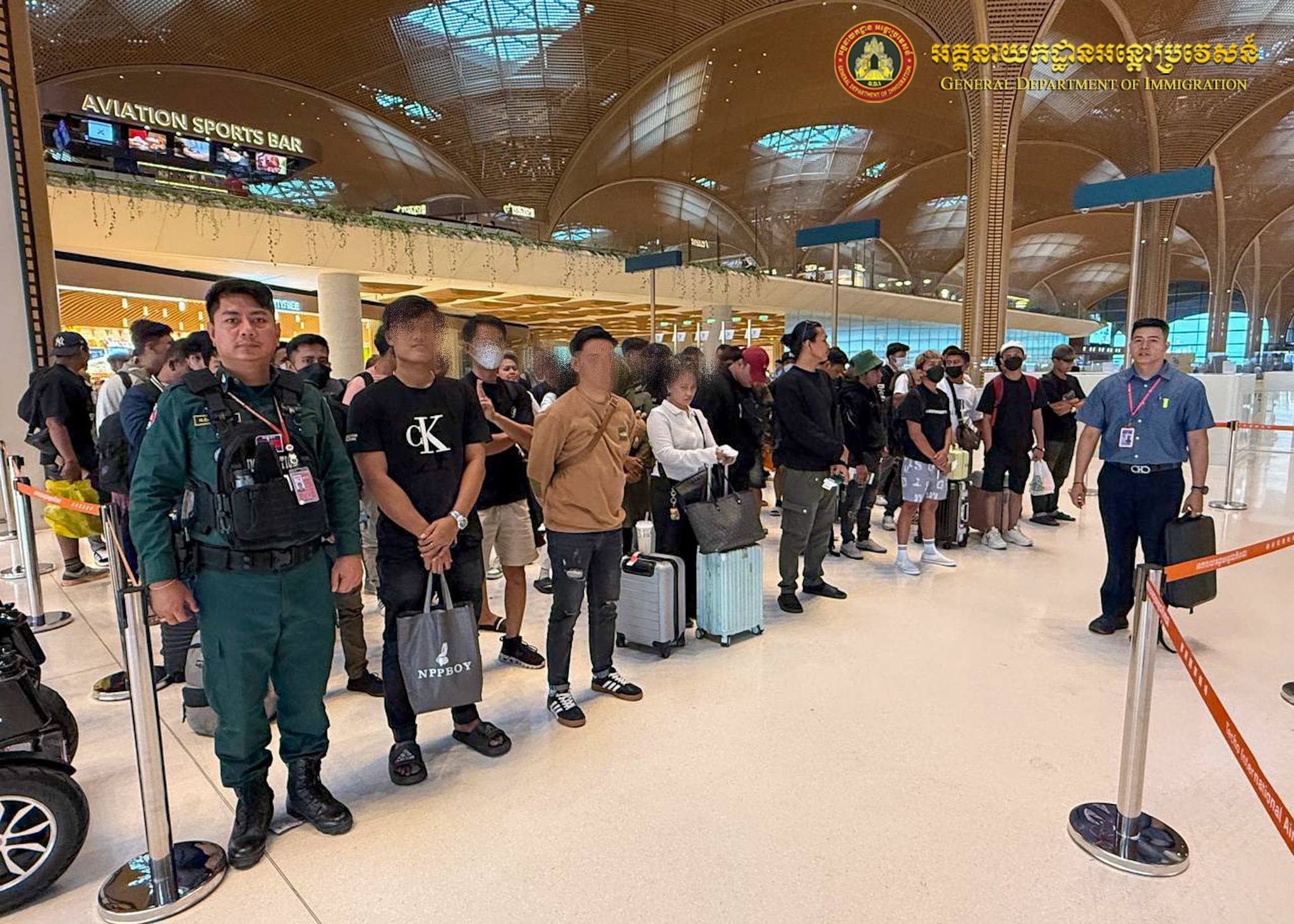 រួមមាន ៖ សេរ៉ាឡេអូន មីយ៉ាន់ម៉ា ប៉ាគីស្ថាន ស្រីលង្កា ចិន វៀតណាម ឥណ្ឌូនេស៊ី នីហ្សេរីយ៉ា រ៉ូម៉ានី ចិនតៃវ៉ាន់ ម៉ាឡេស៊ី សិង្ហបុរី បង់ក្លាដេស កាមេរូន ហ្គាណា យ៉ូហ្គង់ដា ឡាវ ថៃ ម៉ាឡាវី នេប៉ាល់ តូហ្គោល រវ៉ាន់ដា ទួកគី អេត្យូពី ហ្វីលីពីន អៀរឡង់ ប៊ូរុនដា លីបេរីយ៉ា កេនយ៉ា ឡាវ អាហ្វ្រិកខាងត្បូង និងកូរ៉េ ត្រូវបានបណ្ដេញចេញពីព្រះរាជាណាចក្រកម្ពុជា ក្នុងនោះមានជនជាតិចិនចំនួន ៥០៥នាក់ (ស្រី១៣នាក់) ពាក់ព័ន្ធករណីឆបោកតាមប្រព័ន្ធអនឡាញ (Online Scams) ត្រូវបានបណ្ដេញចេញតាមរយៈយន្តហោះពិសេសនៅប៉ុស្តិ៍នគរបាលច្រកទ្វារអាកាសយានដ្ឋានអន្តរជាតិតេជោ និងជនបរទេសមួយចំនួនទៀតពាក់ព័ន្ធករណីលួចឆ្លងដែន បន្លំឯកសារក្លែងក្លាយ ស្នាក់នៅគ្មានលិខិតឆ្លងដែន ចាប់ជំរិទទារប្រាក់ ប្រើប្រាស់ទិដ្ឋាការក្លែងក្លាយ ( QR Code ក្លែងក្លាយ) ឆបោកតាមប្រព័ន្ធអនឡាញ ធ្វើការងារខុសច្បាប់ និងបទល្មើសព្រហ្មទណ្ឌផ្សេងៗទៀតនៅក្នុងព្រះរាជាណាចក្រកម្ពុជា ត្រូវបានបណ្ដេញចេញតាមប៉ុស្តិ៍នគរបាលច្រកទ្វារអាកាសយានដ្ឋានអន្តរជាតិតេជោ ។