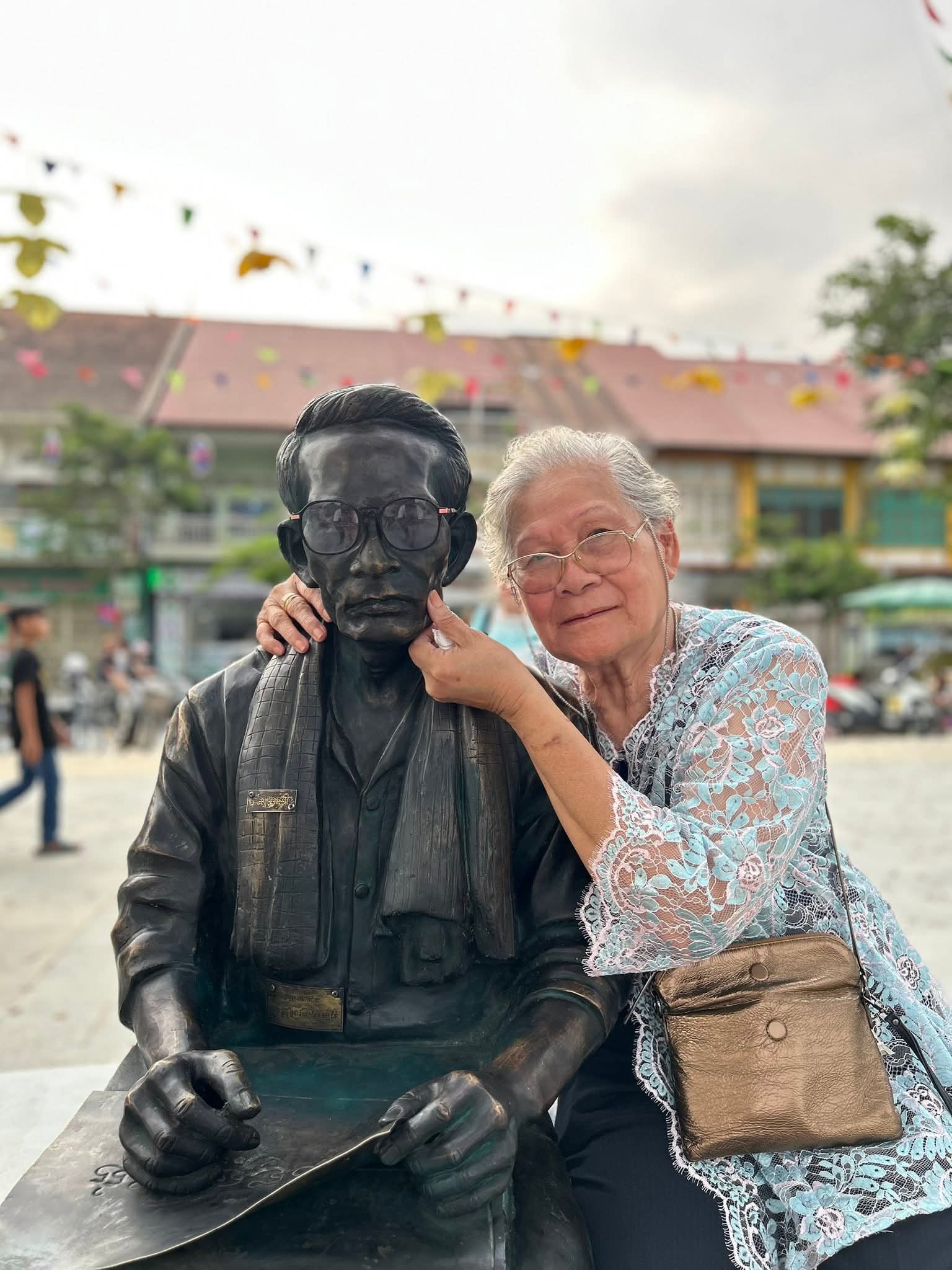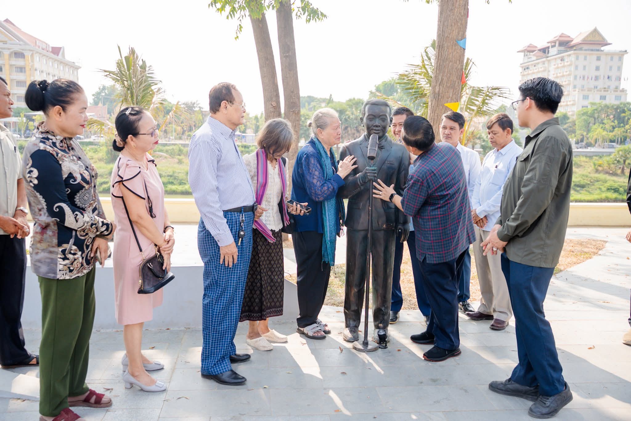 ក្នុងឱកាសនោះ លោកស្រីបានថ្លែងអំណរគុណដល់ឯកឧត្តមអភិបាលខេត្តបាត់ដំបង និងក្រុមការងារដែលបានផ្តល់ការយកចិត្តទុកដាក់ចំពោះកវីនិពន្ធជំនាន់ដើម តាមរយៈការរៀបចំសួនសិល្បៈ និងសាងសង់រូបសំណាកកវី គង្គ ប៊ុនឈឿន ដែលជាស្វាមីរបស់អ្នកស្រី និងកវីនិពន្ធ តារាចម្រៀងដទៃទៀត ដែលមានដើមកំណើតចេញពីខេត្តបាត់ដំបង។