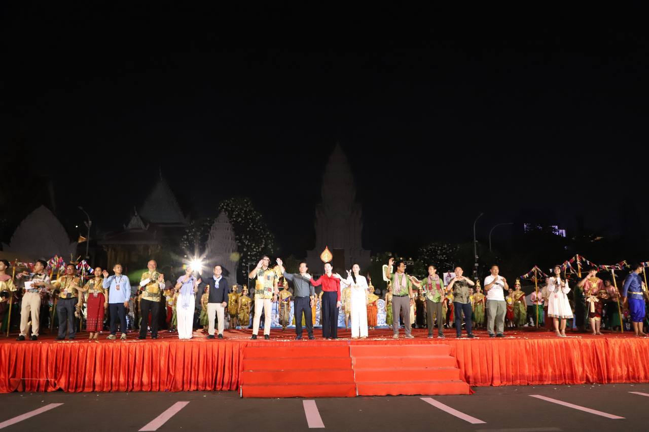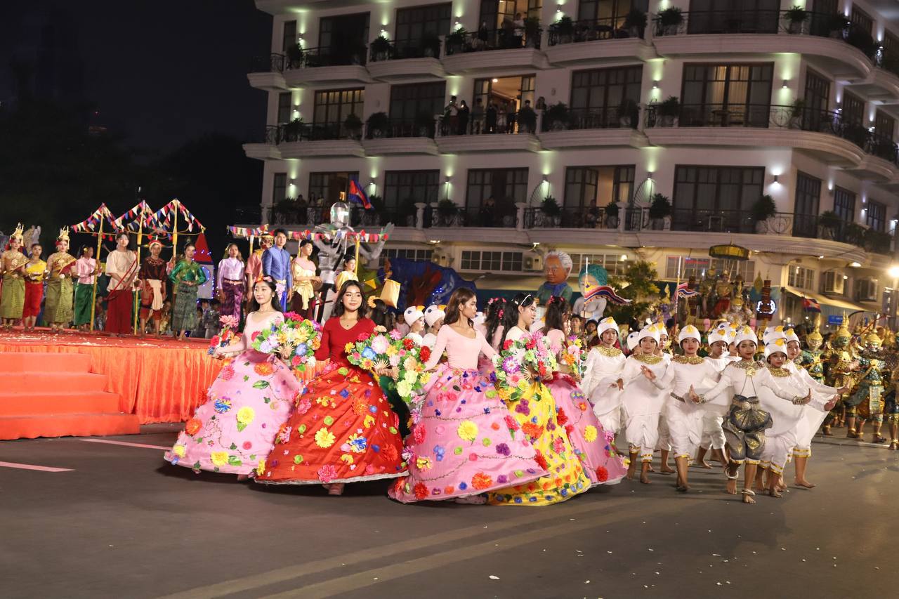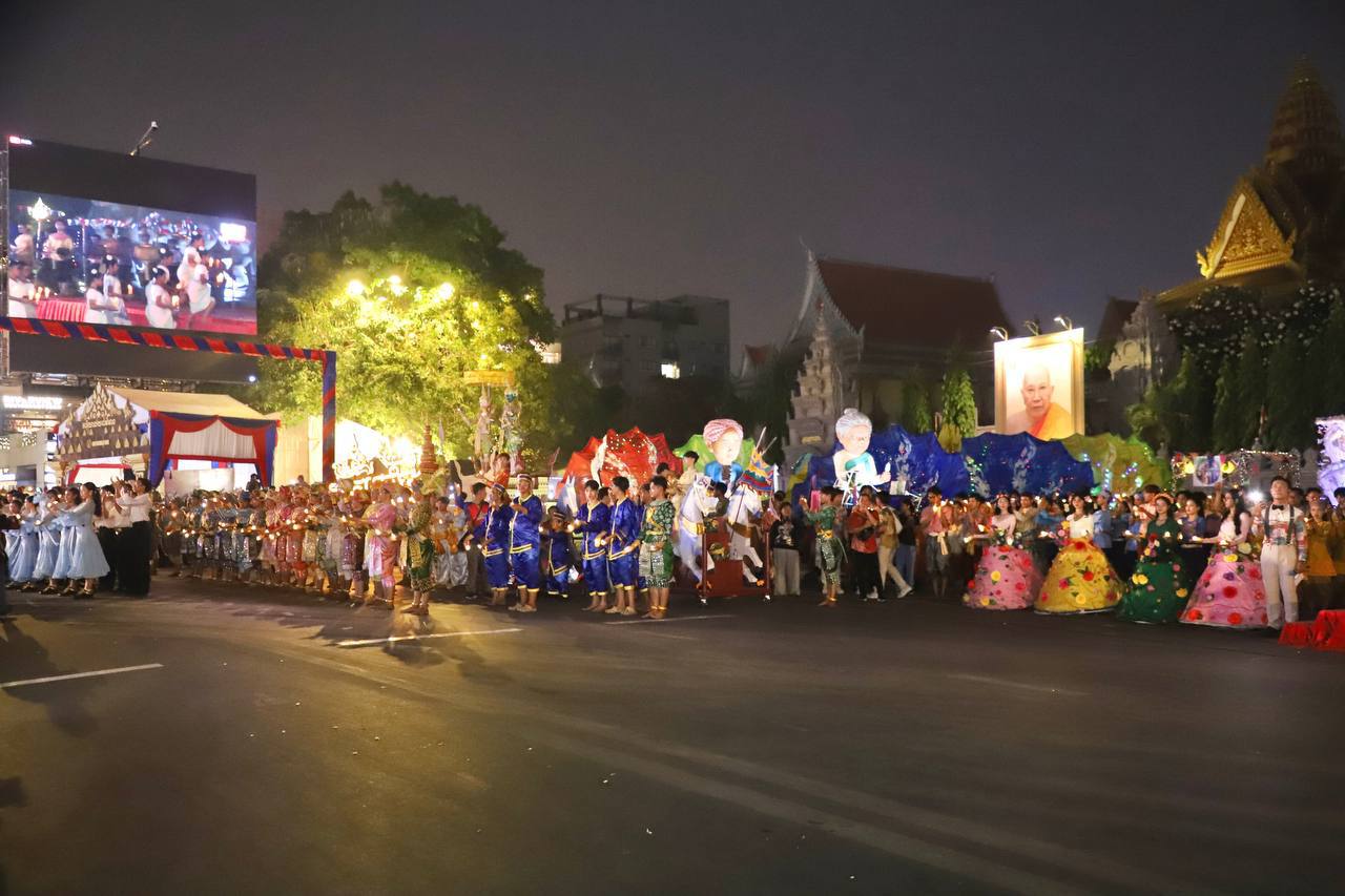 រាជធានីភ្នំពេញ ៖ លោក ឃួង ស្រេង អភិបាលរាជធានីភ្នំពេញ តំណាងខ្ពង់ខ្ពស់ឯកឧត្តម ហ៊ុន ម៉ានី ឧបនាយករដ្ឋមន្ត្រី រដ្ឋមន្ត្រីក្រសួងមុខងារសាធារណៈ និងជាប្រធានសហភាពសហព័ន្ធយុវជនកម្ពុជា (ស.ស.យ.ក.) និងលោកជំទាវនៅល្ងាចថ្ងៃទី១៨ ខែមេសា ដែលជាថ្ងៃទី០៥ នៃព្រឹត្តិការណ៍នគរសង្រា្កន្ត ឆ្នាំ២០២៦ ក្នុងពិធីបុណ្យចូលឆ្នាំថ្មី ប្រពៃណីជាតិខ្មែរ ឆ្នាំមមី បានដឹកនាំយុវជនយ៉ាងច្រើនកុះករ ដង្ហែក្បួន នគរសង្ក្រាន្តឆ្នាំ២០២៦ លើកទី២ នៅបរិវេណផ្លូវថ្មើងជើងចតុមុខ មុខវត្តឧណ្ណាលោម ដោយមានការចូលរួមពីប្រជាពលរដ្ឋ និងភ្ញៀវទេសចរជាតិ និងអន្តរជាតិជាច្រើនក្នុងទឹកមុខសប្បាយរីករាយ មានសាមគ្គីភាពក្រោមម្លប់សន្តិភាពប្រកបដោយសុខសុវត្ថិភាព។