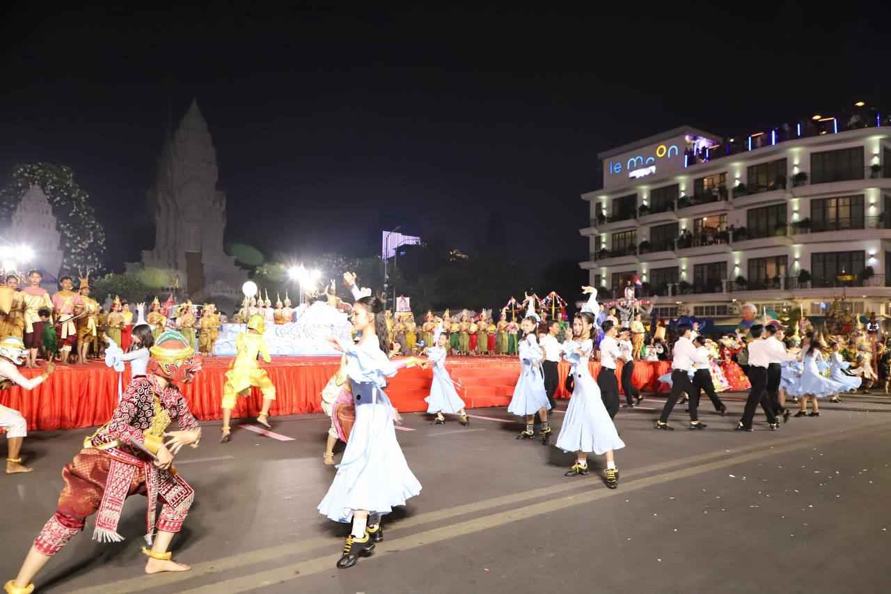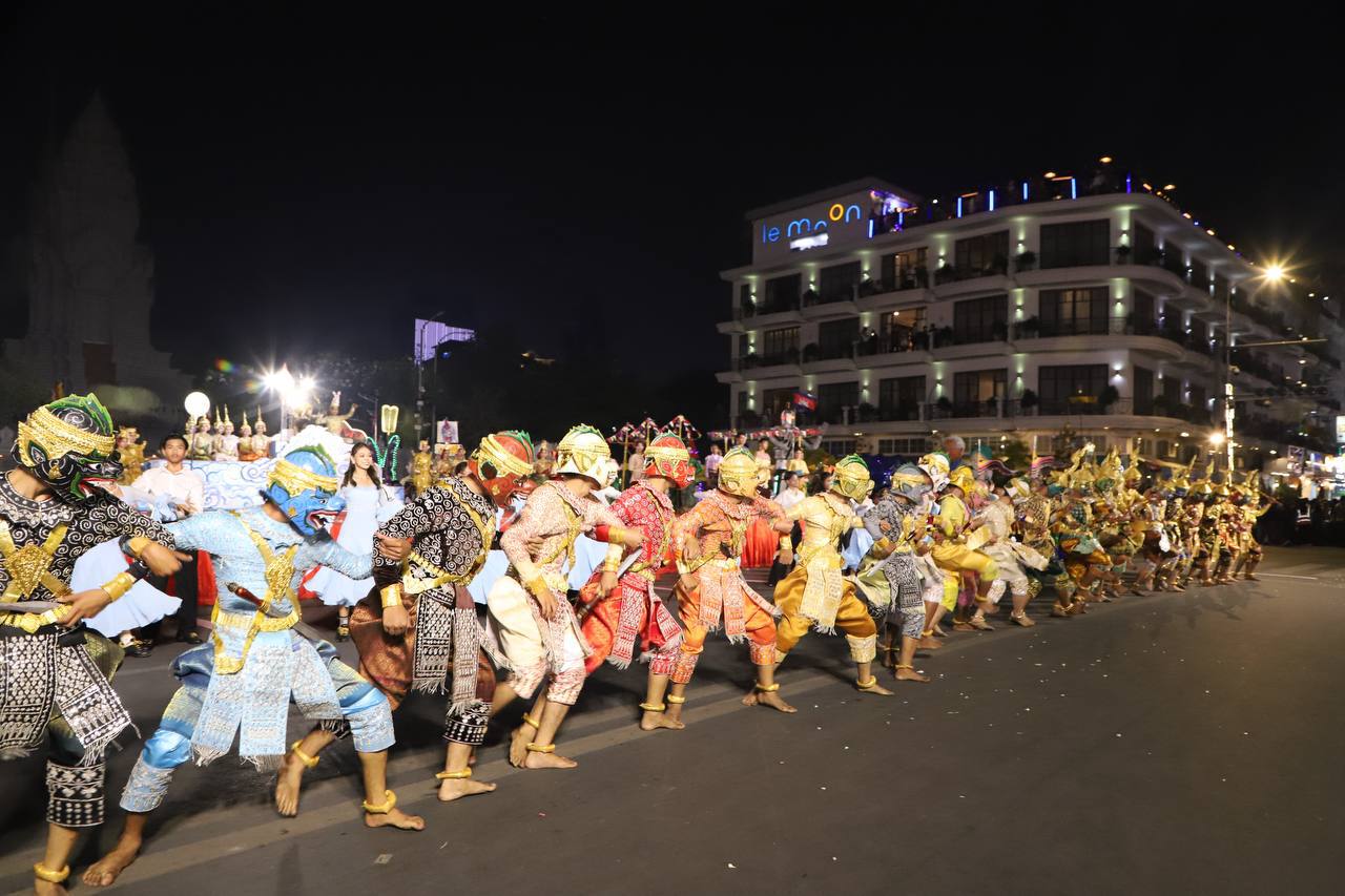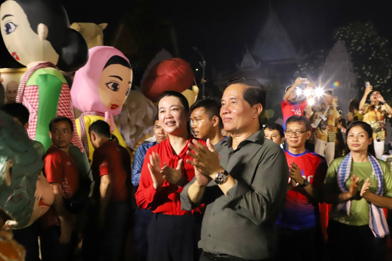 រាជធានីភ្នំពេញ ៖ លោក ឃួង ស្រេង អភិបាលរាជធានីភ្នំពេញ តំណាងខ្ពង់ខ្ពស់ឯកឧត្តម ហ៊ុន ម៉ានី ឧបនាយករដ្ឋមន្ត្រី រដ្ឋមន្ត្រីក្រសួងមុខងារសាធារណៈ និងជាប្រធានសហភាពសហព័ន្ធយុវជនកម្ពុជា (ស.ស.យ.ក.) និងលោកជំទាវនៅល្ងាចថ្ងៃទី១៨ ខែមេសា ដែលជាថ្ងៃទី០៥ នៃព្រឹត្តិការណ៍នគរសង្រា្កន្ត ឆ្នាំ២០២៦ ក្នុងពិធីបុណ្យចូលឆ្នាំថ្មី ប្រពៃណីជាតិខ្មែរ ឆ្នាំមមី បានដឹកនាំយុវជនយ៉ាងច្រើនកុះករ ដង្ហែក្បួន នគរសង្ក្រាន្តឆ្នាំ២០២៦ លើកទី២ នៅបរិវេណផ្លូវថ្មើងជើងចតុមុខ មុខវត្តឧណ្ណាលោម ដោយមានការចូលរួមពីប្រជាពលរដ្ឋ និងភ្ញៀវទេសចរជាតិ និងអន្តរជាតិជាច្រើនក្នុងទឹកមុខសប្បាយរីករាយ មានសាមគ្គីភាពក្រោមម្លប់សន្តិភាពប្រកបដោយសុខសុវត្ថិភាព។