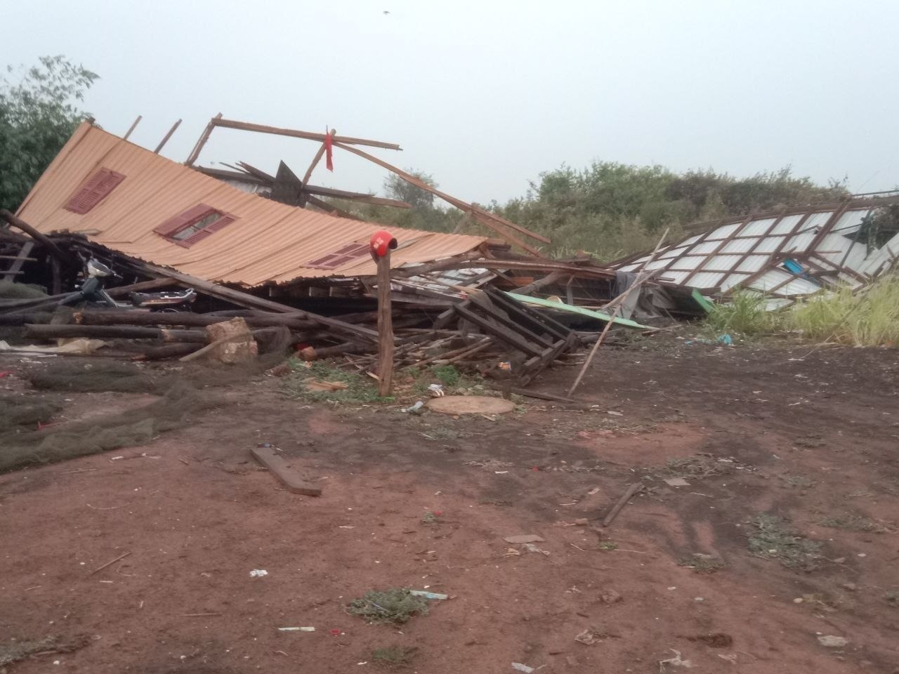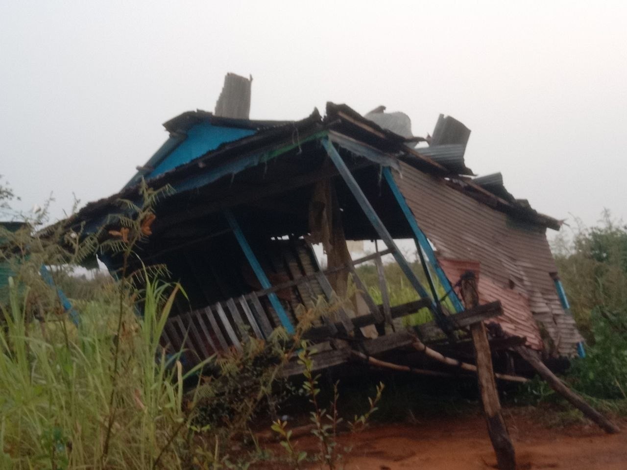 ភ្លៀងលាយឡំខ្យល់កន្ត្រាក់ ខូចខាតផ្ទះជាង៣០ ខ្នង របួ.សធ្ងន់ស្រាលជិត១០នាក់ នៅស្រុកកំពង់លែង