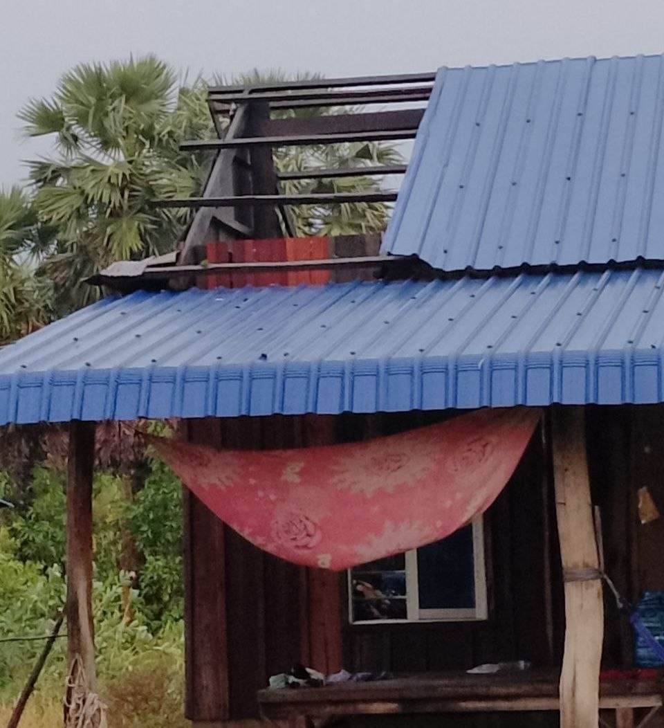 ទី4- ភូមិព្រៃផ្តៅ ឃុំត្រពាំងជោ ស្រុកឱរ៉ាល់ រងការខូចខាតអស់ចំនួន៨ខ្នងផ្ទះ រួមមាន៖
