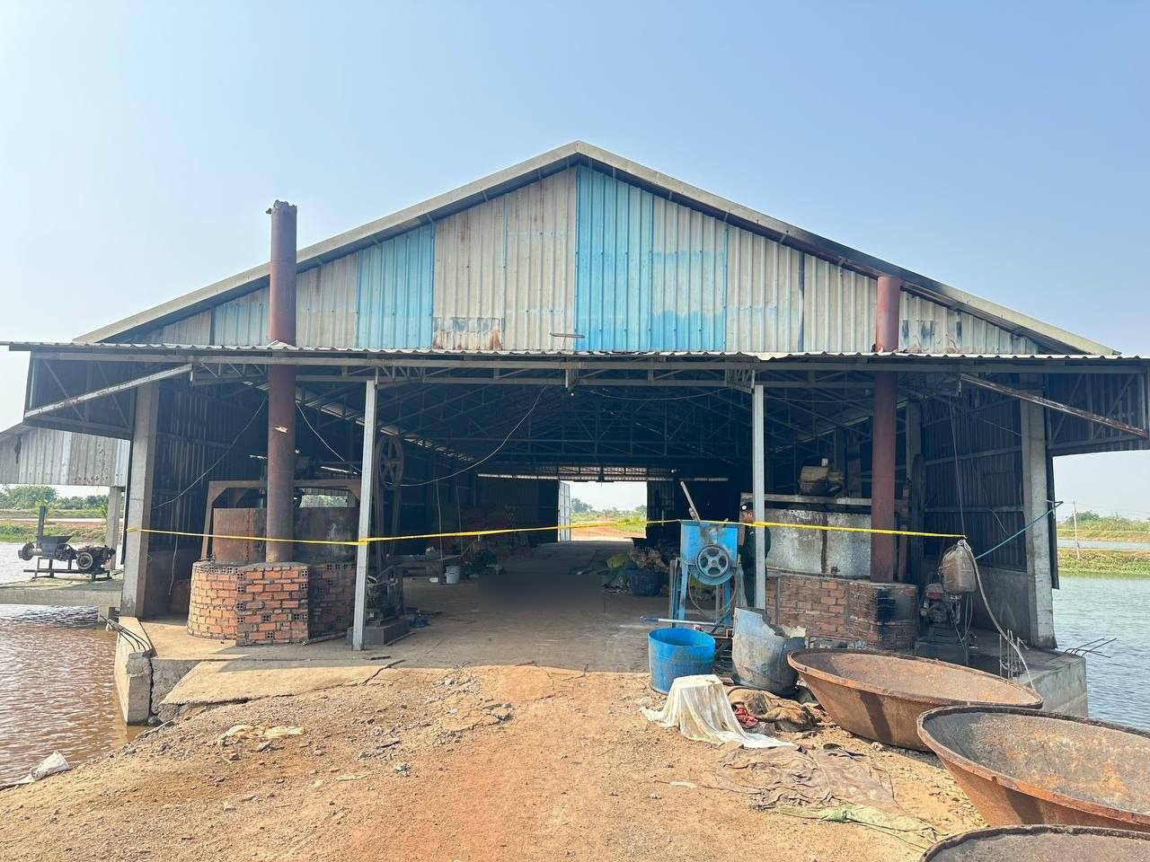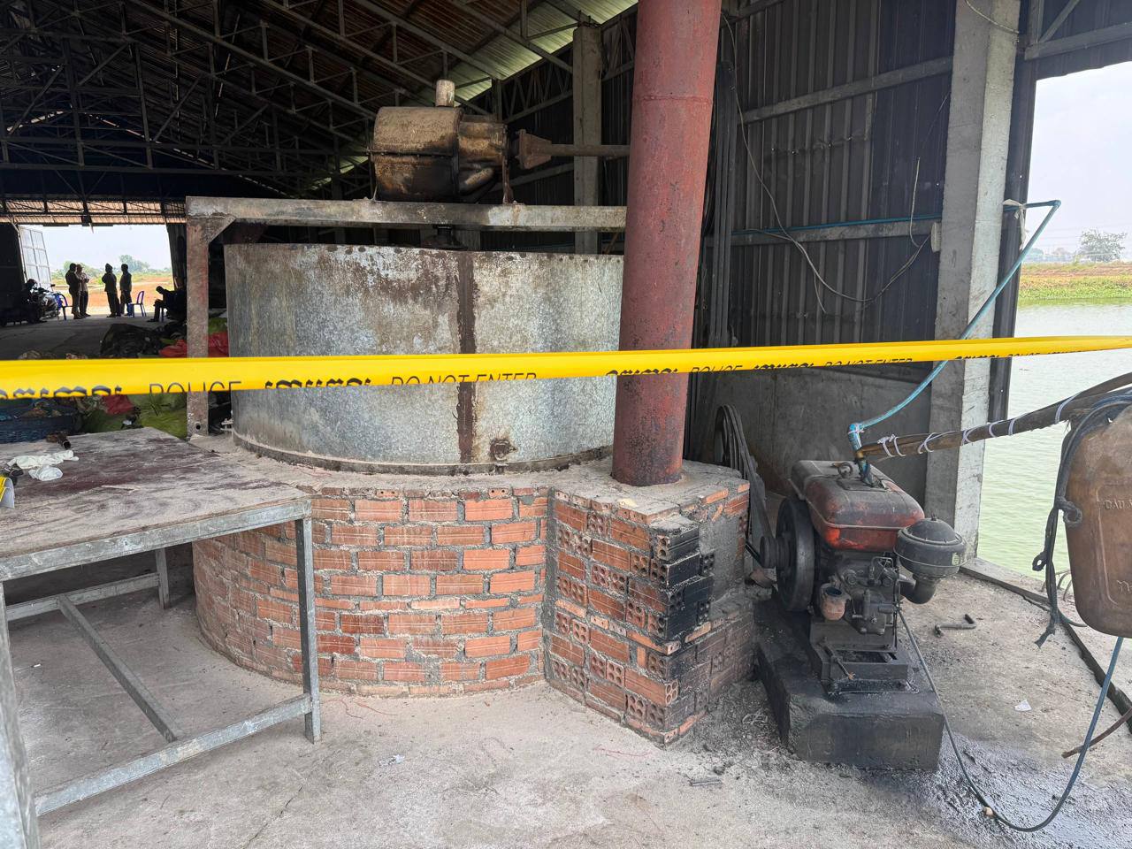 ក្រោយកើតហេតុសមត្ថកិច្ចបានធ្វើការពិនិត្យស្រាវជ្រាវយ៉ាងយកចិត្តទុកដាក់ នៅទីកន្លែងកើតហេតុនេះ ស្ថិតនៅក្នុងបរិវេណស្រះចិញ្ចឹមត្រី របស់ឈ្មោះ ឌឹម កែវឡាយ ភេទប្រុស អាយុ៦៥ឆ្នាំ ផ្ទៃដីទំហំ៦០០០ម៉ែត្រការេ ក្រោមរោងឃ្លាំងដែកដាក់ចំណីត្រី ទំហំ១៥ម៉ែត្រx៣០ម៉ែត្រ កំពស់៨ម៉ែត្រ ភូមិព្រែកក្តាម២ ឃុំកោះចិន ស្រុកពញាឮ ខេត្តកណ្តាល ចំណុចកើតហេតុនៅក្នុងម៉ាស៊ីនកិននុយចំណីត្រី ទំហំ២ម៉ែត្រx២ម៉ែត្រ មានស្នាមប្រឡាក់ឈាម ។