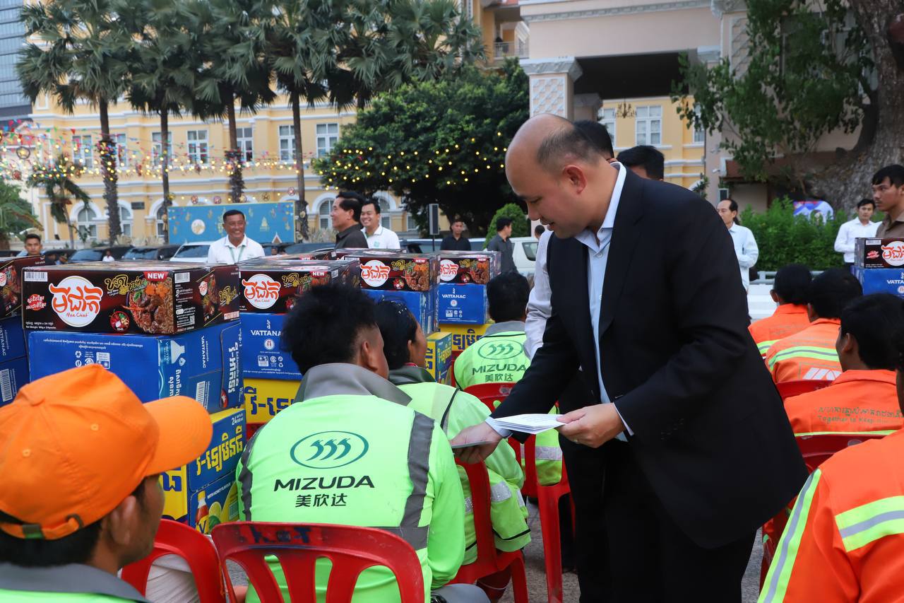 រាជធានីភ្នំពេញ ៖ ដោយការយកចិត្តទុកដាក់ខ្ពស់ពីសម្តេចអគ្គមហាសេនាបតីតេជោ ហ៊ុន សែន និងសម្តេចកិត្តិព្រឹទ្ធបណ្ឌិត ប៊ុន រ៉ានី ហ៊ុនសែន សម្តេចមហាបវរធិបតី ហ៊ុន ម៉ាណែត និងលោកជំទាវបណ្ឌិត ពេជ ចន្ទមុនី បុគ្គលិកសម្អាតអនាម័យ និងប្រជាការពារ ដែលបានប្រតិបត្តិការផ្ទាល់ បោសសម្អាតអនាម័យក្នុងព្រឹត្តិការណ៍នគរសង្ក្រាន្ត ឆ្នាំ២០២៦ នៅរាជធានីភ្នំពេញ ចំនួន ៧០៦នាក់ ទទួលបានអំណោយជាថវិកា និងគ្រឿងឧបភោគបរិភោគ ក្រោមការរៀបចំរបស់សហភាពសហព័ន្ធយុវជនកម្ពុជាជាមួយរដ្ឋបាលរាជធានីភ្នំពេញ ។