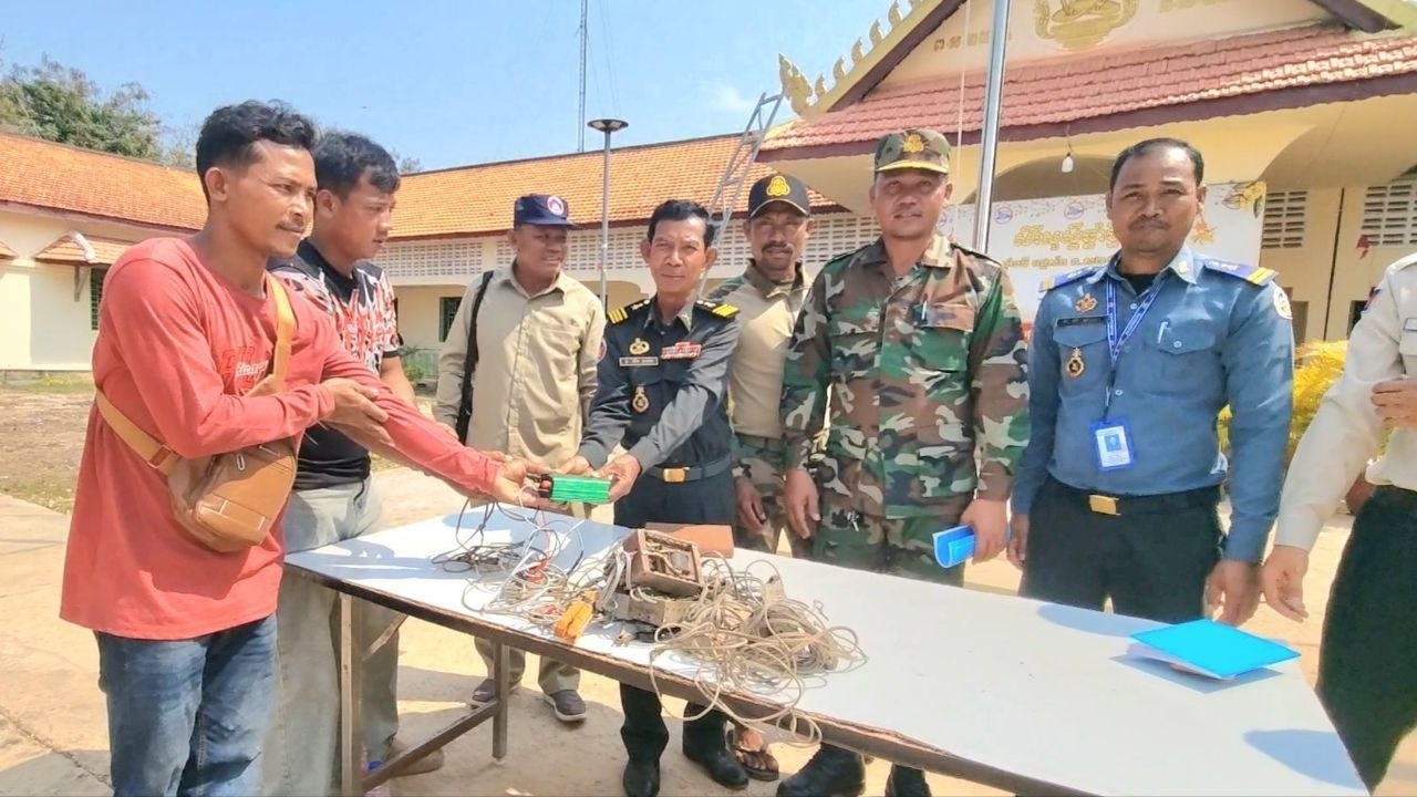 ប្រជាពលរដ្ឋស្រុកកំពង់លែង ស្ម័គ្រចិត្តប្រគល់ឧបករណ៍ឆ.ក់ត្រីជាច្រើនគ្រឿង ជូនទៅអាជ្ញាធរ