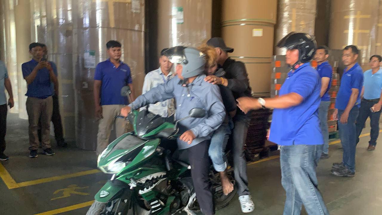 ប្រជាពលរដ្ឋបាននិយាយថា បុរសនោះបានជិះម៉ូតូកាន់ដែកបំពង់ទីបអុកឡុកពេញភូមិនិងបានវាយបំផ្លាញម៉ូតូខ្លួនឯង មើលទៅគួរឲ្យខ្លាចខ្លាំងណាស់ ហើយដោយខ្លាចជននោះបង្កគ្រោះថ្នាក់ដល់ពួកគាត់ និងកូនចៅពួកគាត់ផងនោះ ទើបពួកគាត់រាយការណ៍ជូននគរបាលប៉ុស្តិ៍ចោមចៅទី៣ ឲ្យជួយអន្តរាគមន៍ ។ ពេលទៅដល់នគរបាលច្រើននាក់ រួមទាំងស្ត្រីជាប្រពន្ធផងបាននាំគ្នាចាប់ខ្លួនជននោះបានហើយ ប៉ុន្តែជននោះមានកម្លាំងដូចដំរី បានរើបម្រាស់រួចពីកណ្ដាប់ដៃនគរបាល រួចបោះដំបងដែកបំពង់ទីបចោល និងរត់ចូលទៅក្នុងផ្ទះអ្នកភូមិ មួយកន្លែងហើយបានយកកាំបិតចិតបន្លែនិងកាំបិតបុ័ងតោនៅក្នុងផ្ទះនោះចំនួន៤ដើម កាន់រត់ចូលទៅក្នុងរោងចក្រកាតុងមួយកន្លែងនៅក្បែរនោះទៀត ។