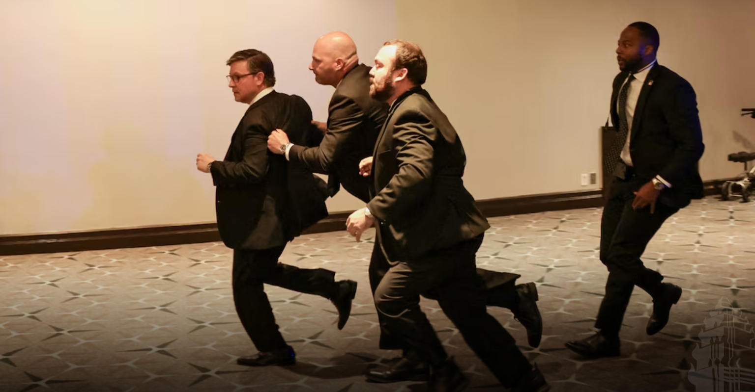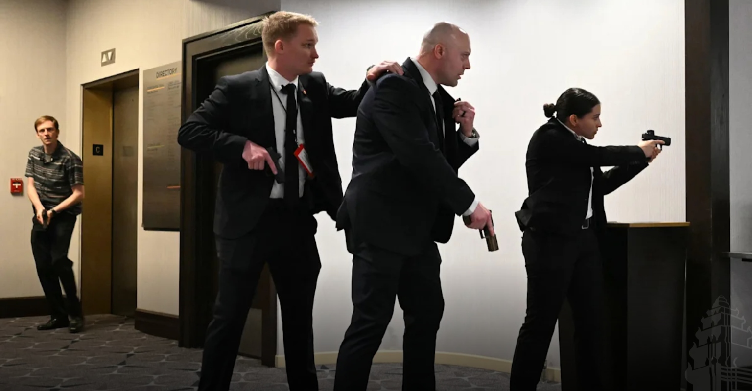 ទីក្រុងវ៉ាស៊ីនតោន៖ កងការពារសម្ងាត់របស់អាមេរិកបានជម្លៀសលោកដូណាល់ត្រាំជាបន្ទាន់ចេញពីកម្មវិធីឈ្មោះ White House Correspondents’ Association (WHCA) ដែលរៀបចំនៅសណ្ឋាគារមួយកន្លែងកាលពីមុននេះបន្តិចបន្ទាប់ពីមានហេតុការណ៍បាញ់កាំភ្លើងជាច្រើនគ្រាប់នៅមិនឆ្ងាយប៉ុន្មានពីទីនោះ។ តាមរយៈវីឌីអូឃ្លីបដែលថតបានពីសណ្ឋាគារវ៉ាស៊ីនតោន ហ៊ីលតុន (Washington Hilton hotel) (ជាទីកន្លែងរៀបចំពិធីជួបជុំរវាងលោកត្រាំ និងអ្នកសារព័ត៌មាន) គេឃើញភ្នាក់ងាររបស់កងការពារសម្ងាត់អាមេរិករត់យ៉ាងប្រសាចសំដៅទៅរកកន្លែងដែលលោកដូណាល់ត្រាំកំពុងអង្គុយ។