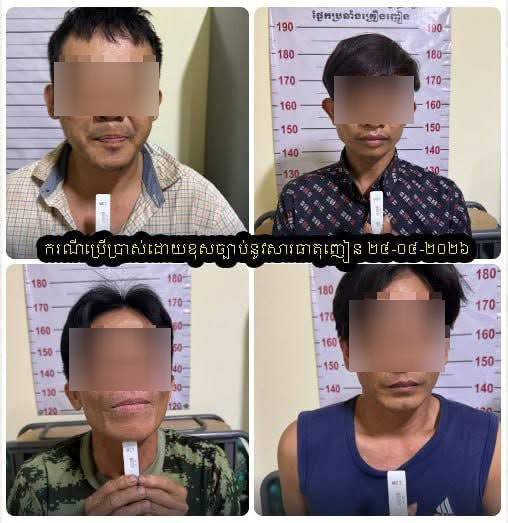 តាមនគរបាលបានអោយដឹងទៀតថា ១-ករណីជួញដូរ និងប្រើប្រាស់ដោយខុសច្បាប់នូវសារធាតុញៀន៖ ថ្ងៃទី២៤ ខែមេសា ឆ្នាំ២០២៦ វេលាម៉ោង១១:០០នាទី ត្រង់ចំណុច ភូមិឃ សង្កាត់ច្រាំងចំរេះទី២ ខណ្ឌឫស្សីកែវ រាជធានីភ្នំពេញ។ ឃាត់ខ្លួនជនសង្ស័យ ០១នាក់ ឈ្មោះ សេន ឧស្មាន ភេទប្រុស អាយុ ៣៦ឆ្នាំ ជនជាតិខ្មែរឥស្លាម មុខរបរមិនពិតប្រាកដ មានទីលំនៅ ផ្ទះលេខ១៨៣៥ ភូមិឃ សង្កាត់ច្រាំងចំរេះទី២ ខណ្ឌឫស្សីកែវ។ វត្ថុតាងចាប់យក រួមមាន ក្រាមសថ្លាសង្ស័យជាសារធាតុញៀនចំនួន ០៣កញ្ចប់ និងទូរស័ព្ទ ០២គ្រឿង។
