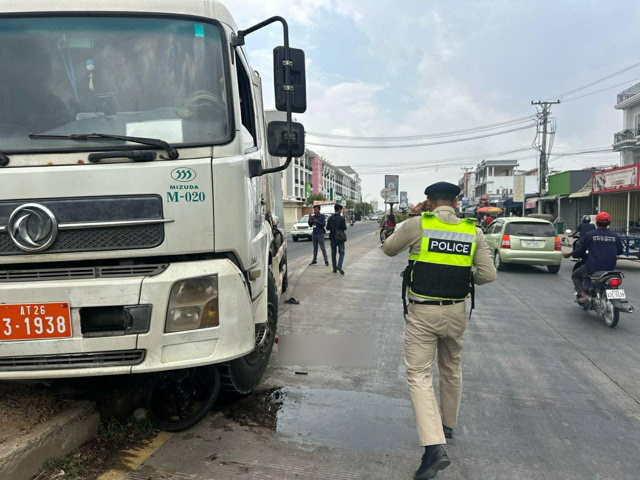 រថយន្តបង្កនោះពណ៍ស ពាក់ស្លាកលេខ26AT-3-1938 ជារថយន្តដឹកសំរាមរបស់ក្រុមហ៊ុន ប្រមូលសំរាម MIZUDA បើកបរដោយបុរសមិនស្គាល់អត្តសញ្ញាណម្នាក់ ។ ចំណែកបុរសរងគ្រោះដល់ស្លាប់ខាងលើ ក៏មិនទាន់ស្គាល់អត្តសញ្ញាណដូចគ្នា មានវ័យប្រមាណ៦០ឆ្នាំ គ្រាន់តែដឹងថាគាត់គឺជាកម្មករសំណង់ នៅការដ្ឋានសំណង់នៅជិតនោះដែរ ។