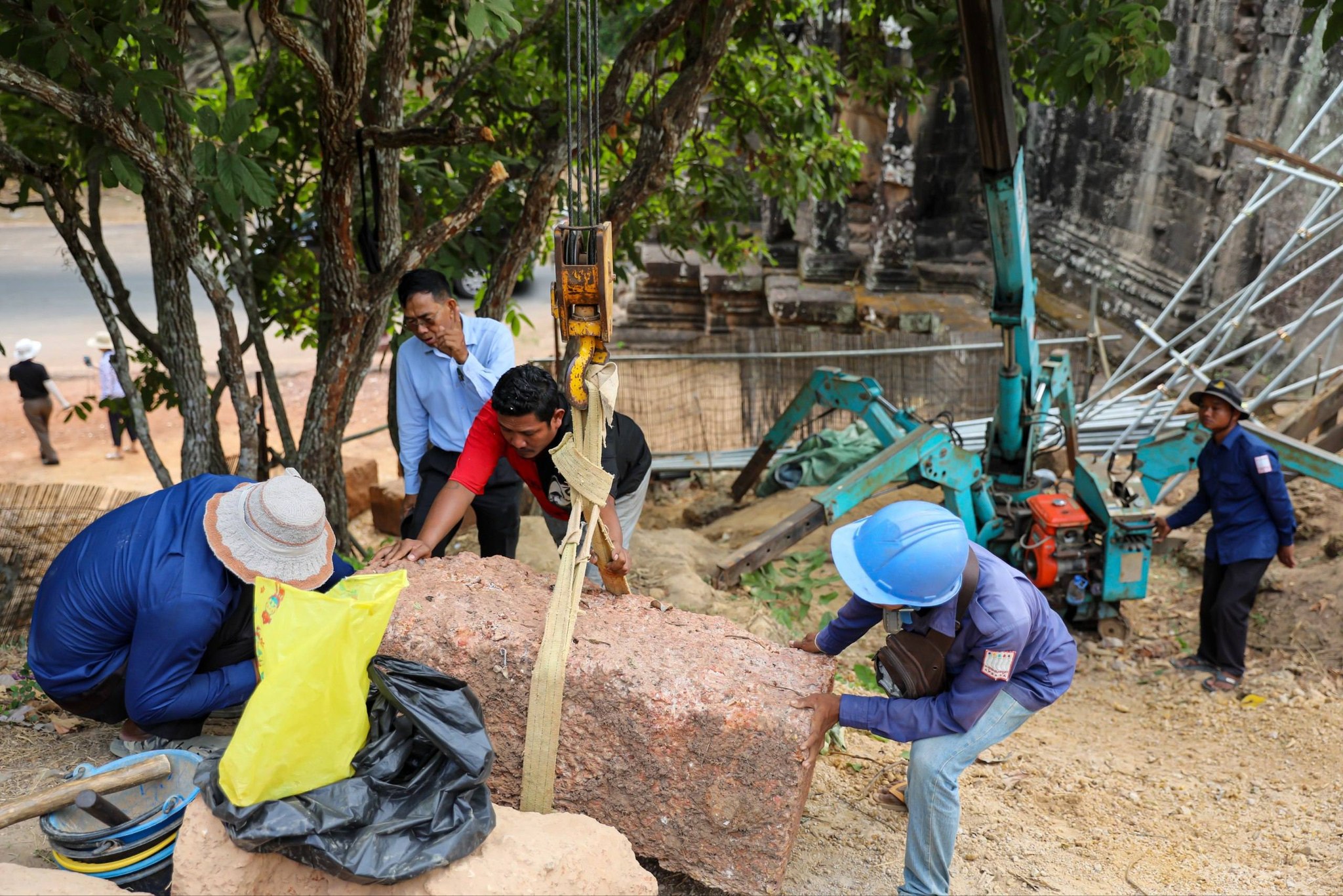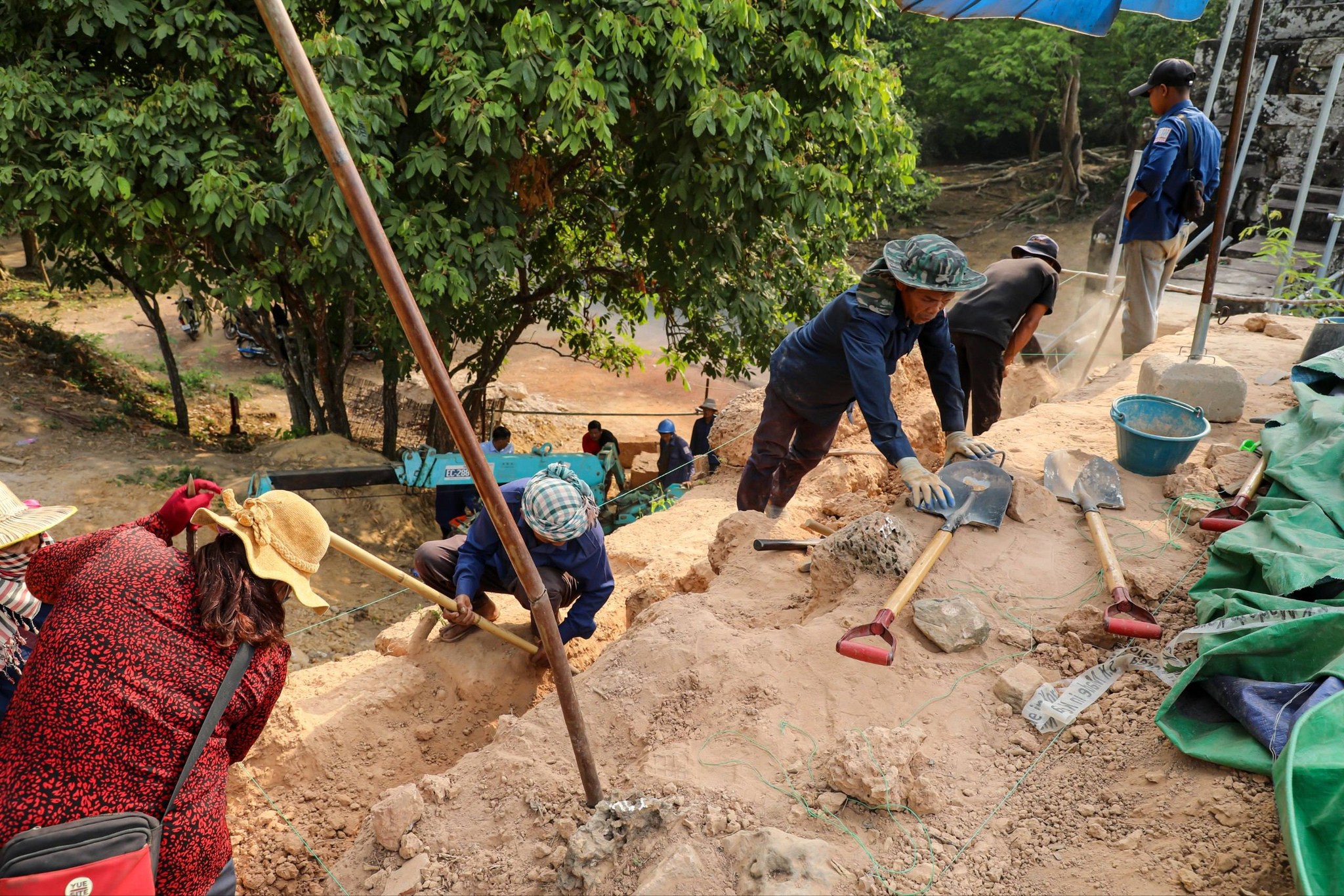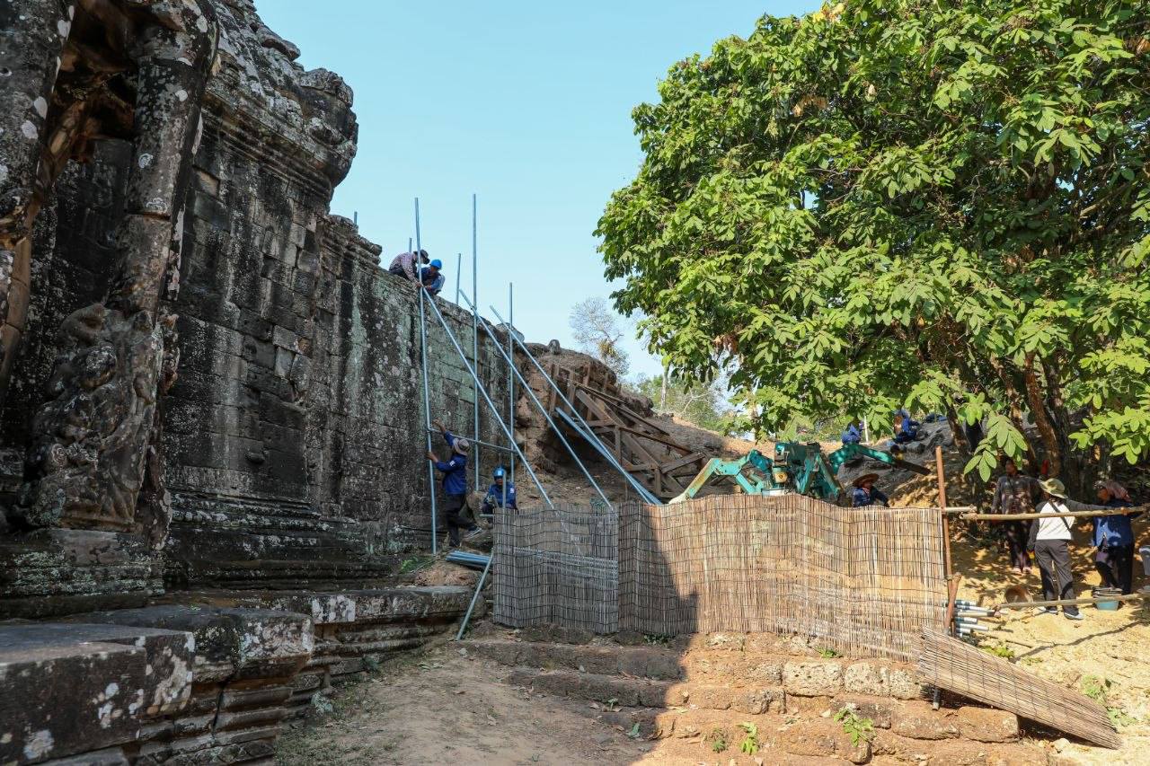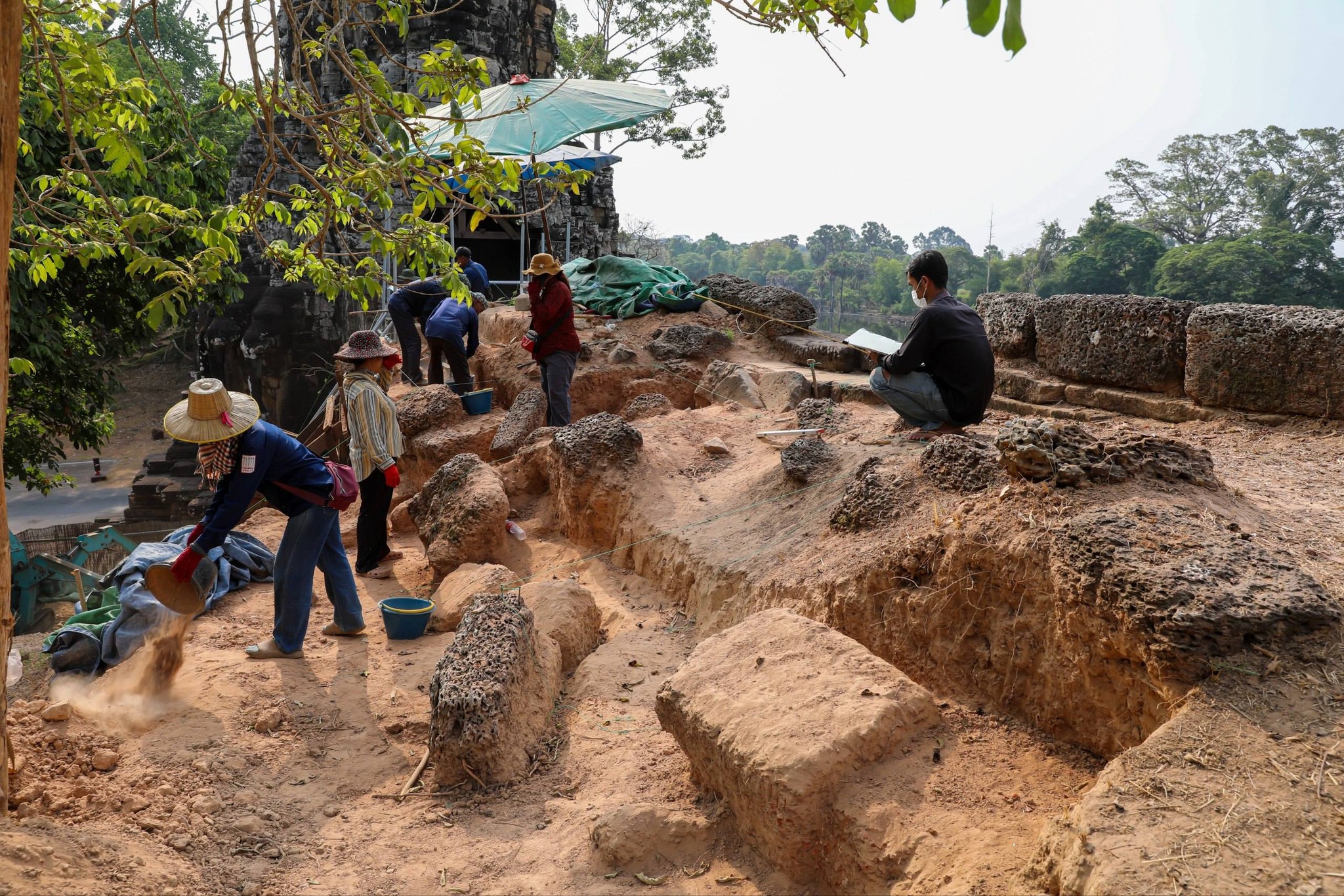 បន្ទាប់មកមានការធ្វើកំណាយ ដើម្បីសិក្សាឱ្យច្បាស់លាស់ពីរចនាសម្ពន្ធគ្រឹះ សម្រង់ប្លង់ចុះបញ្ជីលេខថ្មដែលនៅរាយប៉ាយ ហើយយកទៅដាក់ទីតាំងដើម ។ ចំពោះថ្មណា ដែលមិនទាន់ស្គាល់ទីតាំង គឺយកទៅរក្សាទុកមួយកន្លែង ដើម្បីឱ្យអ្នកជំនាន់ក្រោយសិក្សាស្រាវជ្រាវបន្ត ព្រមទាំងរៀបចំទីតាំងដាក់គ្រឿងចក្រ និងធ្វើរោងយាមសម្រាប់ការពារសម្ភារៈនៅទីនេះ ។ ការជួសជុលកំពែងរបស់ក្រុងអង្គរធំប្រវែង១៥ម៉ែត្រ នៅផ្នែកខាងត្បូង ឆៀងខាងលិចខ្លោងទ្វារទន្លេអុំ គឺចាប់ផ្ដើមពីដើមខែមេសា ឆ្នាំ២០២៦ ដោយចំណាយរយៈពេលប្រហែល៦ខែ ទើបអាចបញ្ចប់ ។