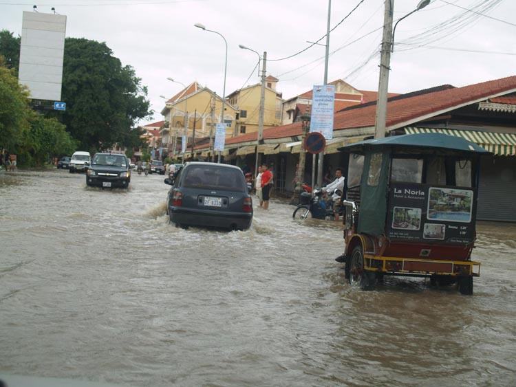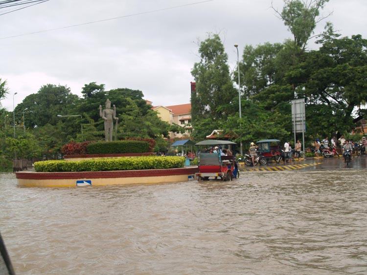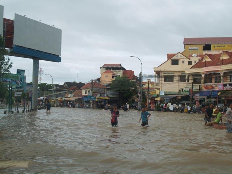 លោកប៊ុន ថាឫទ្ធិ អភិបាលរងខេត្តសៀមរាប បានមានប្រសាសន៍ថា សង្កាត់ចំនួន៤របស់ក្រុងសៀមរាប រួមមានសង្កាត់សាលាកំរើក សង្កាត់ស្វាយដង្គំ សង្កាត់ជ្រាវ និងសង្កាត់សៀមរាប ដែលស្ថិតនៅអមបណ្តោយដងស្ទឹងសៀមរាប ត្រូវបានជន់លិចតាំងពីវេលាថ្ងៃត្រង់ ម្សិលមិញមកម៉្លេះគឺថ្ងៃទី១០ កញ្ញា ។ ការជន់លិចនេះដោយសារតែមានធ្លាក់ភ្លៀងយ៉ាងខ្លាំងកាលពីប៉ុន្មានថ្ងៃមកនេះ នៅតំបន់ជួរភ្នំដងរែក និងតំបន់មួយចំនួននៅប៉ែកខាងលើខេត្តរួចបន្តហូរចាក់ចូលមកក្នុងអាងបឹងទន្លេសាប តាមស្ទឹងសៀមរាបដែលពុះកាត់ពាក់កណ្តាលក្រុងនេះ។ ប៉ុន្តែដោយសារតែបឹងទន្លេសាបមានកម្រិតទឹកខ្ពស់ដូចគ្នានោះ ធ្វើឱ្យទឹកហូរមិនទាន់ក៏ហូរចូលក្រុងសៀមរាបតែម្តង ។