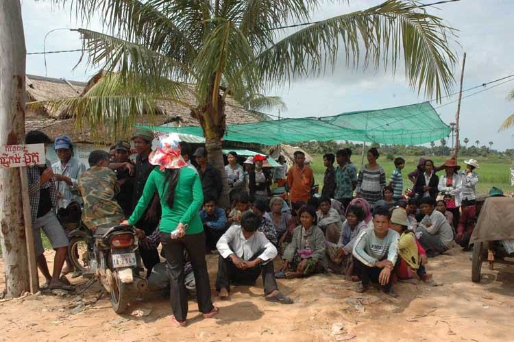 ខេត្តសៀមរាប ៖ ប្រជាពលរដ្ឋប្រមាណជាង៣០០នាក់មកពីសហគមន៍ដីធ្លីត្បែង និងស្គន់ ក្នុងស្រុកបន្ទាយស្រី រួមទាំងសហគមន៍ដីធ្លីចំនួន៤ផ្សេងទៀត កាលពីព្រឹកថ្ងៃទី៦ តុលា ២០១១ បានលើកគ្នាទៅឈរនៅមុខសាលាដំបូងខេត្ដសៀមរាប ដើម្បីចាំលើទឹកចិត្ដដល់តំណាងអ្នកភូមិស្គន់ចំនួន៤រូប ដែលត្រូវចៅក្រមស៊ើបសួរចេញដីកាបង្គាប់ឱ្យចូលខ្លួនក្រោមបទចោទប្រកាន់ «កាន់កាប់ថ្មីលើអចលនវត្ថុរបស់បុគ្គលឯកជនគ្មានប័ណ្ណ» ប្រព្រឹត្តនៅភូមិស្គន់ ឃុំត្បែង ស្រុកបន្ទាយស្រី ខេត្ដសៀមរាប កាលពីថ្ងៃទី១៥ កក្កដា ឆ្នាំ២០០៨។