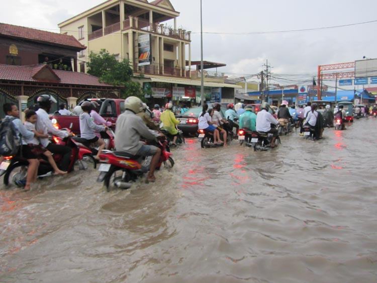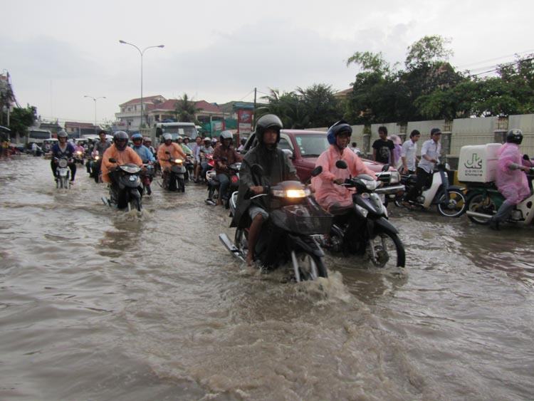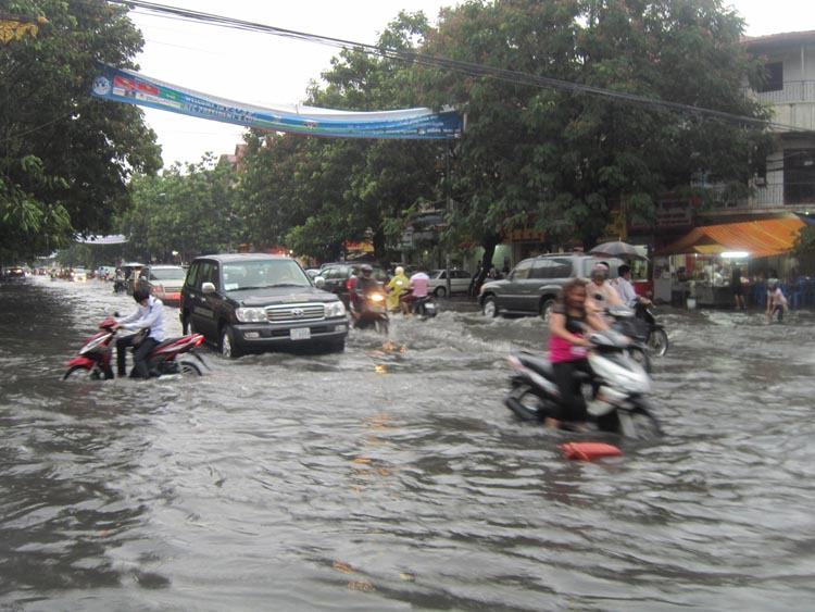 រាជធានីភ្នំពេញ ៖ ភ្លៀងបានធ្លាក់១មេធំយ៉ាងខ្លាំងដូចមេឃមានកំហឹង កាលពីរសៀលថ្ងៃទី៨ ឧសភា ។ ការធ្លាក់ភ្លៀងយ៉ាងគំហុកនេះបណ្តាលឱ្យតាមដងវិថីនានា ត្រូវបានជន់លិច ហើយបានបង្កឱ្យការធើ្វចរាចរណ៍តាមយានយន្តនានាត្រូវកកស្ទះយ៉ាងខ្លាំង ។ តាមមន្ត្រីសាលារាជធានីភ្នំពេញឱ្យដឹងថា ស្ថានភាពជន់លិចផ្លូវនេះមានភាពធ្ងន់ធ្ងរជាងថ្ងៃទី៧ ឧសភា ដោយកម្ពស់ទឹកភ្លៀងបានកើនឡើង ហើយទឹកមិនអាចស្រកវិញភ្លាមៗ ។ ចំណែកស្ថានីយបូមទឹកទាំង១២កន្លែង ក៏បានដំណើរការតាំងពីថ្ងៃទី៧ មករា មក គឺបានធ្វើសកម្មភាពយ៉ាងមមាញឹកបំផុតមិនអាចធ្វើឱ្យទឹកភ្លៀងដែលជន់លិចយូរឡើយ ។
