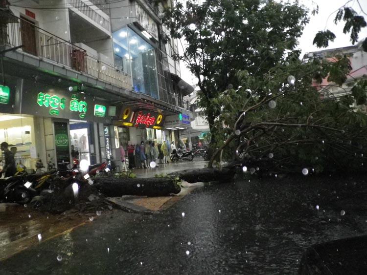 ចំណែកនៅមុខវិទ្យាល័យជាស៊ីមសន្ធរម៉ុក មែកឈើក៏ត្រូវបានខ្យល់វាយបំបាក់សង្កត់លើខ្សែភ្លើងនិងដើមក្ងោកមួយដើមទៀត នៅមុខមន្ទីរពេទ្យកុមារជាតិបានដួលរលំទាំងឫស សង្កត់របងបណ្តាលឱ្យរងការខូចខាត ។ នៅក្នុងខណ្ឌទួលគោលនៅកំណាត់ផ្លូវកម្ពុជាក្រោមចាប់ពីសន្ធរម៉ុកទៅស្តុបដេអិន ត្រូវទឹកលិច ហើយម៉ូតូមួយចំនួនបានរលត់ម៉ាស៊ីន ។