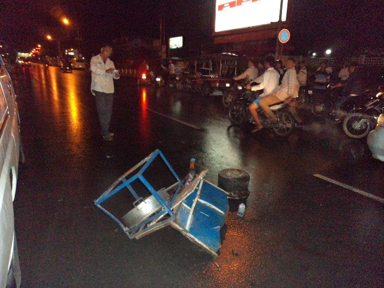 ជិះម៉ូតូបុករទេះរុញលក់នំប៉ាវឆ្លងផ្លូវស្លាប់ម្នាក់ អ្នកលក់នំប៉ាវរបួសធ្ងន់