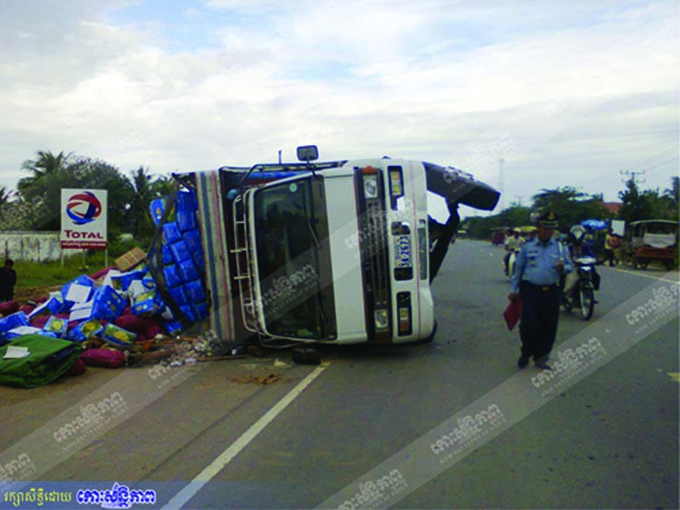 ប្រភពព័ត៌មានពីកន្លែងហេតុបានឱ្យដឹងថា មុនពេលកើតេហតុរថយន្តខាងលើដឹកបន្លែមកពីក្រុងបាវិត ខេត្តស្វាយរៀង យកមកលក់នៅផ្សារដើមគ រាជធានីភ្នំពេញ លុះមកដល់ភូមិសាស្ត្រខាងលើ ក៏បែកកង់ក្រោយក្រឡាប់ផ្ងារជើងមើលទៅគួរឱ្យញាក់សាច់ បំផុត ។ ប្រភពដដែលបានឱ្យដឹងថា ក្នុងហេតុការណ៍នេះមិនបណ្តាលឱ្យមានមនុស្សណាម្នាក់រងរបួសឡើយ ដោយសាររថយន្តដឹកបន្លែនេះបើកបរក្នុងល្បឿនធម្មតា ម៉្យាងទៀតដោយសារវេលាកើតហេតុខាងលើនេះ មិនសូវមានមនុស្សម្នាធ្វើដំណើរតាមដងផ្លូវ ។