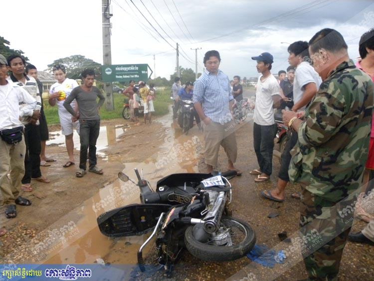ប្រភពពីកន្លែងកើតហេតុបានឱ្យដឹងថា មុនពេលកើតហេតុគេឃើញម៉៉ូតូមា៉កសេ១២៥ ពណ៌ខ្មៅ ស៊េរី២០០៦ មួយគ្រឿងជិះគ្នាពីរនាក់ប្តីប្រពន្ធជាជនជាតិវៀតណាម បើកពីជើងទៅត្បូង លុះមកដល់ចំណុចកែងរបងស្នងការដ្ឋានខេត្ត ស្រាប់តែរថយន្តមួយគ្រឿងម៉ាកកាមរីគូទហើម ពណ៌ស្លាបក្អែក បើកបរដោយក្មេងស្ទាវ៣-៤នាក់ ក្នុងសភាពស្រវឹងក្នុងល្បឿនលឿន បានរេចង្កូតទៅបុកចំពីក្រោយម៉ូតូជនរងគ្រោះពេញទំហឹង បណ្តាលឱ្យស្ត្រីជាប្រពន្ធខ្ទាតទៅបុកនឹងកញ្ចក់រថយន្តបែកក្បាលរួចធ្លាក់មកក្រោមត្រូវរថយន្តកិនបាក់ជើងរបួសធ្ងន់ដឹកយកទៅសង្គ្រោះនៅមន្ទីរពេទ្យខេត្ត និងត្រូវបានបញ្ជូនបន្តយកទៅសង្គ្រោះនៅប្រទេសវៀតណាម ។ ចំណែកអ្នកបើកបររថយន្តបង្កត្រូវបានគេស្គាល់ថា ឈ្មោះ ចយ ក្រោយពីបុកម៉ូតូរួចក៏បើករថយន្តហួសដល់ផ្ទះសំណាក់មេគង្គបត់ស្តាំទំនងជាភ័យស្លន់ស្លោ ក៏ទុករថយន្តចោលរួចនាំគ្នារត់បាត់ស្រមោលតែម្តង ។