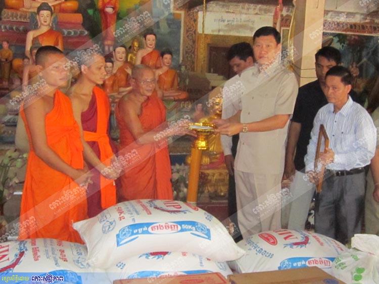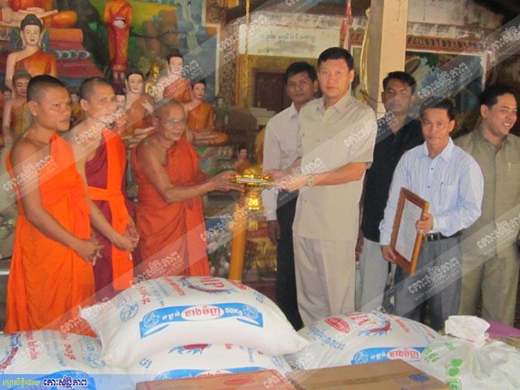 អំណោយដែលព្រះសង្ឃបរិច្ចាគដល់គណៈអភិបាលខណ្ឌដង្កោនាពេលនោះរួមមានបាឡុងចំនួន១០ ដែលក្នុង១បាឡុងៗមានសម្ភារផ្ទះបាយ១ឈុត អង្ករ៥រយគីឡូក្រាម មីកេសតូចចំនួន១០កេស មីកេសធំចំនួន១០កេស ទឹកស៊ីអីុវ៥យួរ ទឹកត្រី៥យួរ ត្រីខ១កេស ទឹកដោះគោ១កេស ទឹកក្រូច៥កេស ទឹកបរិសុទ្ធ៥កេស តែ១បាវ និងថវិកាចំនួន១លានរៀលដែលសម្ភារថវិកា និងគ្រឿងឧបភោគបរិភោគខាងលើសរុបជាប្រាក់អស់ចំនួន៦លានរៀល ។