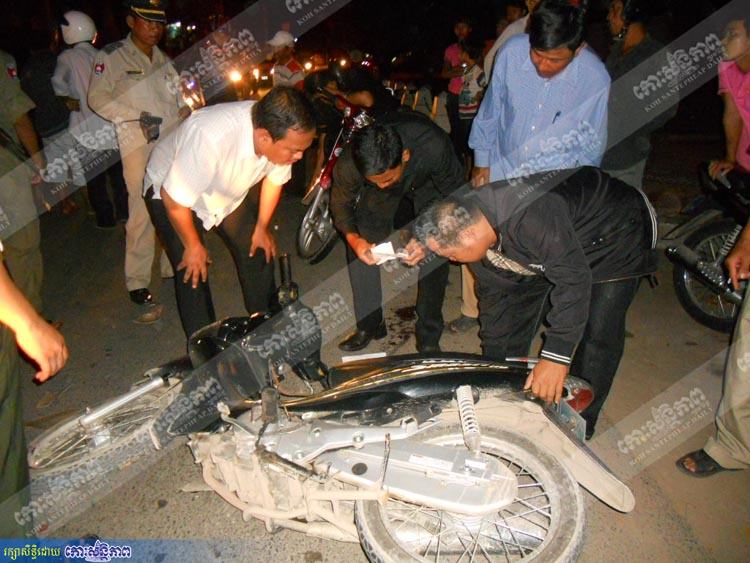 រាជធានីភ្នំពេញ ៖ បុរសម្នាក់ជិះម៉ូតូស្មាសរីវ៉ូ ពណ៌ខ្មៅ ក្នុងស្ថានភាពស្រវឹងបានទៅបុករ៉ឺម៉កម៉ូតូធ្វើឱ្យអ្នកបើករ៉ឺម៉កម៉ូតូបាក់ជើងខាងស្តាំ ចំណែកអ្នកបង្កបែកមុខបែកមាត់ កាលពីវេលាម៉ោង៨និង១៥នាទីយប់ថ្ងៃទី៣០ កញ្ញា តាមបណ្តោយវិថីព្រះសុធារស ចំណុចមុខស្ថានទូតសូវៀតក្នុងសង្កាត់ទន្លេបាសាក់ ខណ្ឌចំការមន ។