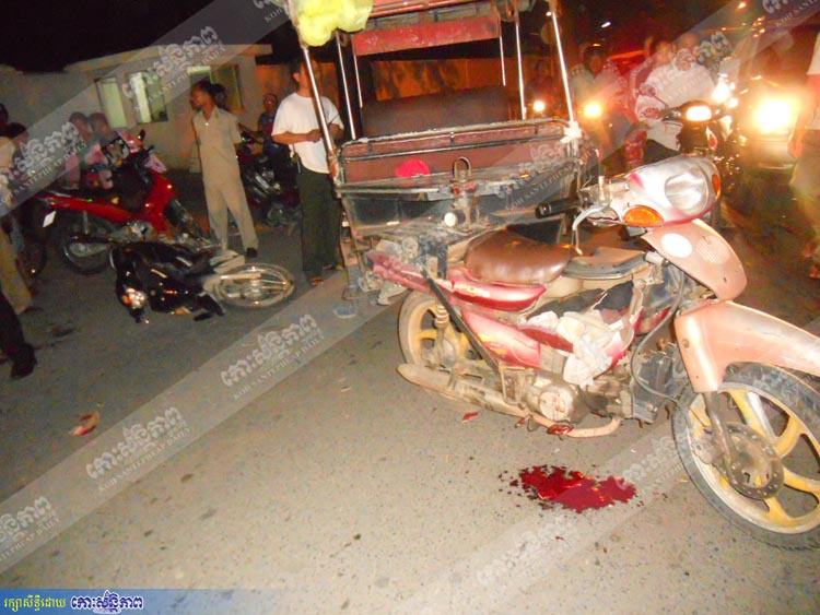 សាក្សីឃើញហេតុការណ៍បានឱ្យដឹងថា ម៉ូតូស្មាសពណ៌ខ្មៅ បើកបរដោយបុរសម្នាក់ក្នុងស្ថានភាពស្រវឹងជិះពីជើងទៅត្បូង ចំណែករ៉ឺម៉កម៉ូតូបើកពីត្បូងទៅជើង ក្នុងទិសដៅបញ្ច្រាសគ្នា ខណៈមកដល់ចំណុចខាងលើម៉ូតូស្មាសរីវ៉ូរេចង្កូតទៅបុកអ្នកបើករ៉ឺម៉កបណ្តាលឱ្យដួលបាក់ជើងខាងស្តាំ ឯអ្នកបើកម៉ូតូដួលបែកមុខបែកមាត់ផងដែរ ។