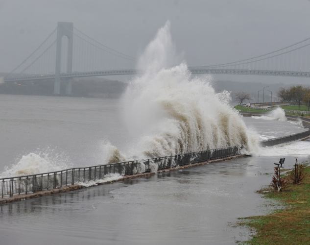 នៅក្រុងញូវយ៉កបណ្តាស្ពានកាត់ទន្លេEAST RIVER ក្នុងនោះមានស្ពានល្បីល្បាញBROOKLYN BRIDGE ត្រូវបិទចាប់តាំងពីថ្ងៃទី២៩ តុលា វេលាម៉ោង១៩ម៉ោងក្នុងស្រុក ។ ចំណែកពលរដ្ឋក្រុងញូវយ៉កជាច្រើនសិបពាន់គ្រួសារគ្មានអគ្គិសនីប្រើប្រាស់។ នៅភាគកណ្តាលសង្កាត់ម៉ាន់ ហាតាន់ ក្រុងញូវយ៉ក ដងស្ទូចមួយនៅកំពូលអគារកម្ពស់៩០ជាន់ដែលកំពុងកសាងត្រូវបាក់មួយផ្នែកព្រោះតែខ្យល់បោកបក់ខ្លាំង ។