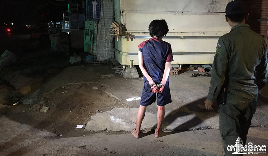 តាមសម្តីសមត្ថកិច្ចប្រចាំការនៅគោលដៅថ្នល់បត់បានឱ្យដឹងថា មុនពេលឃាត់ខ្លួនយុវជនខាងលើគឺពួកគាត់កំពុងតែប្រចាំការនៅគោលដៅខាងលើស្របពេលនោះដែរក៏ស្រាប់តែមានបងប្អូនរបស់យុវជនខាងលើបានរត់ទៅប្រាប់ពួកគាត់ថា កូនក្មួយរបស់គាត់មិនដឹងជាយ៉ាងមិចនោះទេគឺបានយកកាំបិតទៅកាប់បំផ្លាញទ្រព្យសម្បត្តិនៅក្នុងផ្ទះ មានដូចជាទូកញ្ចក់ និងទ្វារផ្ទះ ឡើងបែកបាក់អស់ហើយដោយឮសូរដំណឹងបែបនេះសមត្ថកិច្ចបានដឹកនាំកម្លាំងចុះទៅដល់ផ្ទះខាងលើដើម្បីឃាត់យុវជននោះតែពេលសមត្ថកិច្ចទៅដល់យុវជនរូបនោះបែរជាមិនខ្លាចសមត្ថកិច្ចថែមទាំងបក់ដៃហៅសមត្ថកិច្ចឱ្យចូលមកចាប់ខ្លួនទាំងដៃមានកាន់កាំបិតបុ័ងតោនៅជាប់ខ្លួនទៀតផង ។