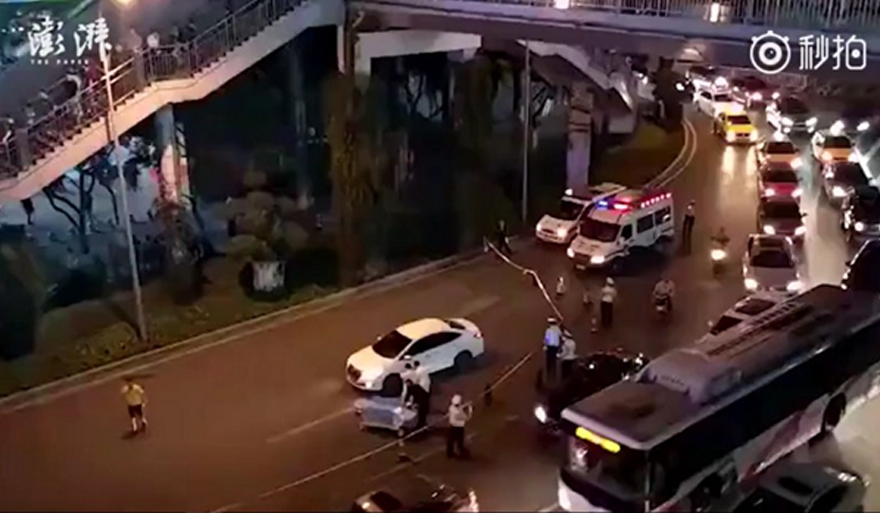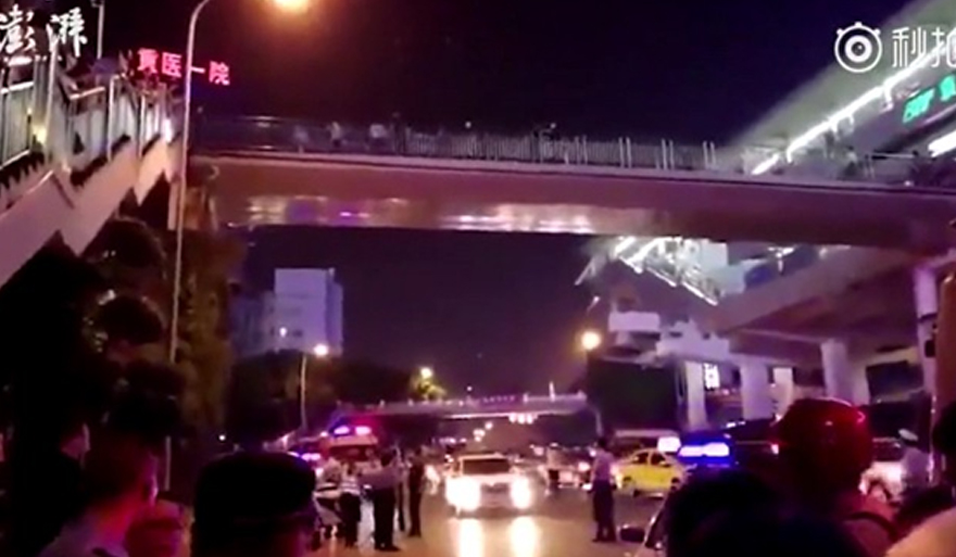 បុរសម្នាក់ត្រកូល ជាំង (Jiang) បានជិះរថយន្តក្រុងជាមួយនឹងកូនប្រុសអាយុ៧ឆ្នាំ ពីផ្ទះរបស់ខ្លួននៅជិតទីក្រុង Chengdu កាលពីថ្ងៃអាទិត្យ។ មកដល់ Chengdu ភ្លាម គាត់បានឡើងលើស្ពានអាកាសឆ្លងកាត់ថ្នល់ជាមួយនឹងកូនប្រុសអាយុ៧ឆ្នាំ ហើយចាប់បោះចុះមកលើថ្នល់។