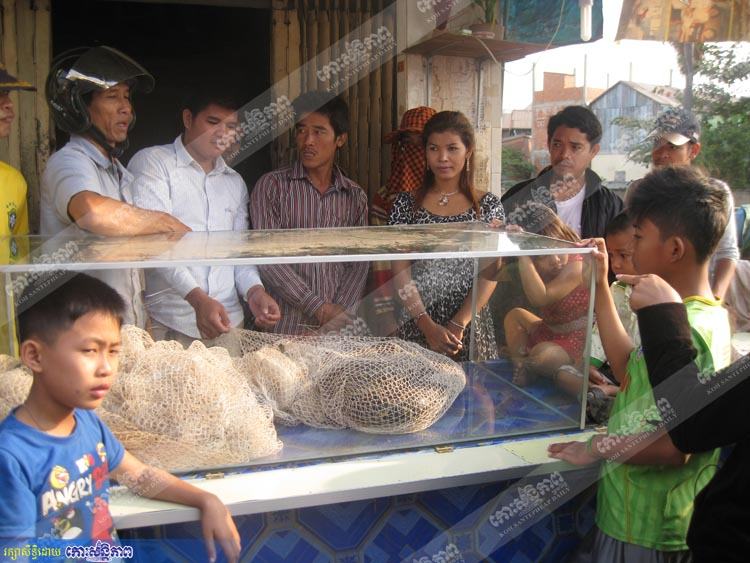 រាជធានីភ្នំពេញ ៖ សត្វពស់ថ្លាន់ញីមួយក្បាលបានលូនចូលផ្ទះប្រជាពលរដ្ឋម្នាក់នៅក្នុងភូមិទួលគោក សង្កាត់ទួលសង្កែ ខណ្ឌឫស្សីកែវ និងចាប់បានកាលពីវេលាម៉ោង១២យប់ថ្ងៃទី៣០ មករា ព្រមទាំងបានធ្វើឱ្យមានការភ្ញាក់ផ្ញើលកាលពីព្រឹកថ្ងៃទី៣១ មករាដែលគេមានជំនឿថា នេះជាប្រថ្នូលល្អ និងអាចរំដោះគ្រោះចង្រៃ ខណៈដែលម្ចាស់ផ្ទះកំពុងមានជំងឺ ។ ពស់ថ្លាន់មួយក្បាលនេះមានទម្ងន់១៧គីឡូក្រាម គឺប៉ុនកំភួនជើងមនុស្សចាស់ ។