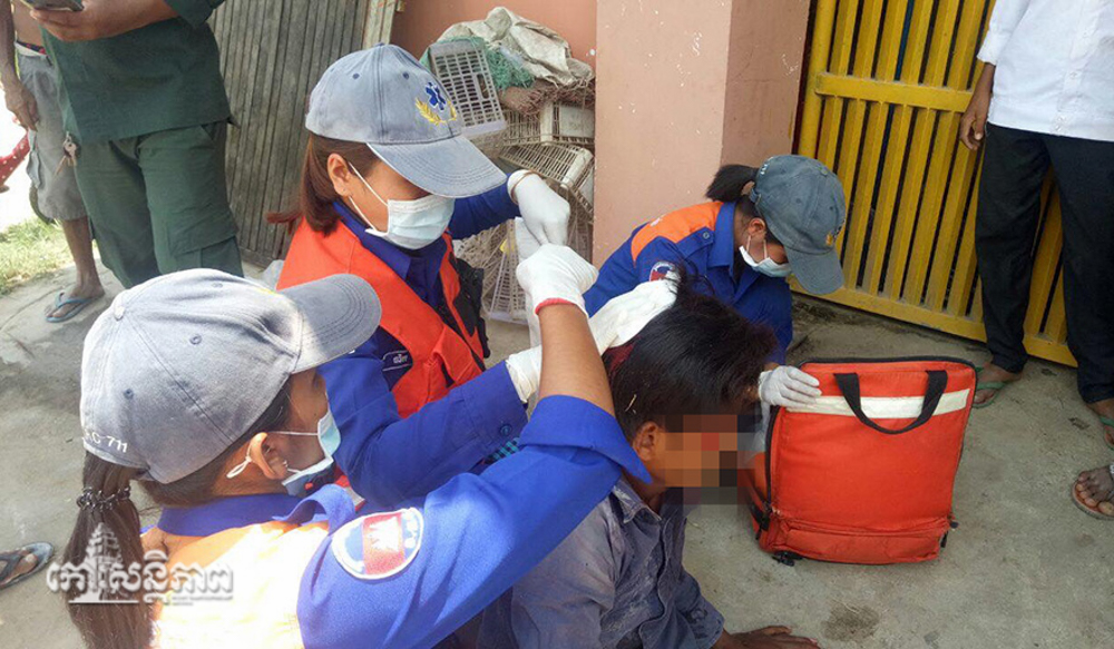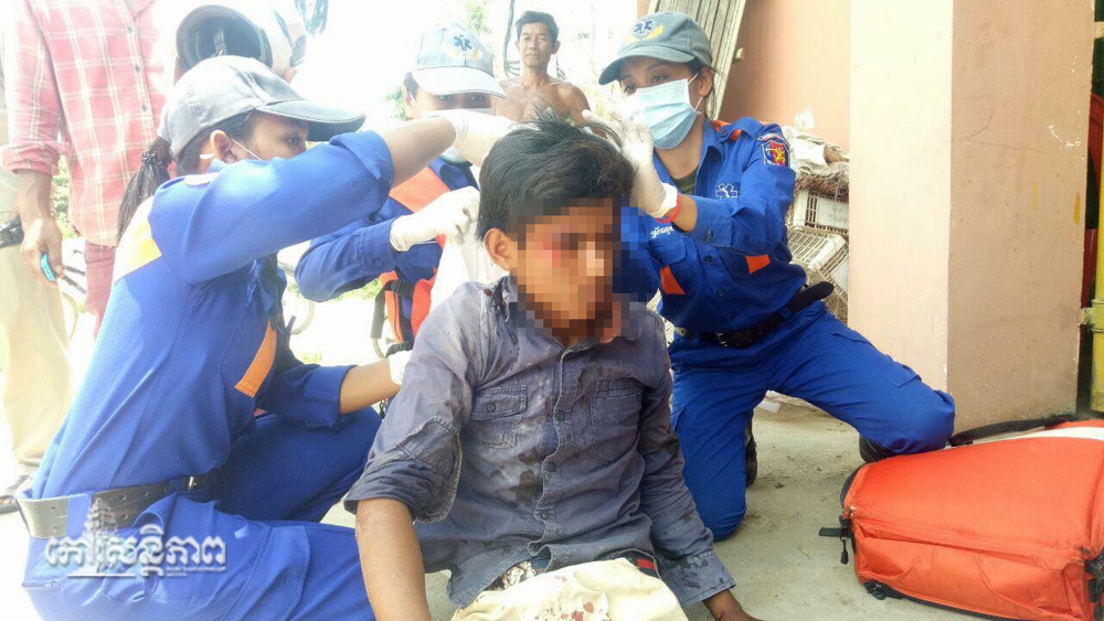 រាជធានីភ្នំពេញ៖ យុវជនម្នាក់បានរងរបួសយ៉ាងធ្ងន់ធ្ងរ ហើយត្រូវបានក្រុមសង្គ្រោះអង្គភាព៧១១ ដឹកយកទៅសង្គ្រោះបន្ទាន់ភ្លាមៗ ខណៈពេល រូបគេកំពុងជិះម៉ូតូតែម្នាក់ឯង ស្រាប់តែមានជនមិនស្គាល់មុខជិះម៉ូតូតាមកាប់ពីក្រោយ បណ្ដាលឲ្យ រយះក្បាល និងដួលម៉ូតូបោកទៅលើថ្នល់ថែមទៀត ចំណែកឯជនដៃដល់បានជិះម៉ូតូគេចខ្លួនបាត់ស្រមោលតែម្ដង។