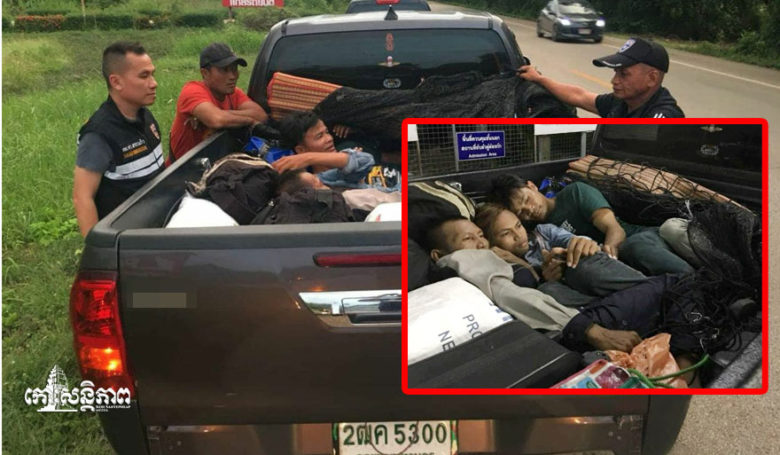 ខេត្តបន្ទាយមានជ័យ ៖ សមត្ថកិច្ចចម្រុះថៃបានចាប់ឃាត់រថយន្ត២បាំងកន្លះ១គ្រឿង ឆែកឆេររកឃើញលួចលាក់ពលករខ្មែរ១៣នាក់ ដែលក្នុងនោះមានមេខ្យល់ម្នាក់ផង កាលពីព្រឹកថ្ងៃទី៥ ឧសភា នៅស្រុកអារញ្ញ ខេត្តស្រះកែវ ប្រទេសថៃ ។ នេះបើតាមប្រភពព័ត៌មានដែលគេបង្ហោះចែកចាយគ្នាតាមប្រព័ន្ធវ៉សអាប់ បានបង្ហាញឱ្យដឹង ។ ប្រភពបន្តថា អ្វីដែលគួរឱ្យហួសចិត្តនិងអៀនខ្មាសនោះ គឺពលករខ្មែរទាំង១៣នាក់នេះ ត្រូវបានគេដឹកតាមរថយន្តម៉ាកតូយ៉ូតាវីហ្គោ ពណ៌ប្រផេះ ពាក់ស្លាកលេខថៃ 5300 ដោយដាក់ពួកគេនៅក្នុងឃ្លុបខាងក្រោយ និងគ្របស្បៃពីលើជិតដោយឱ្យពលករខ្មែរទាំងនោះ ដេកគរលើគ្នាស្មើគែមឃ្លុបរថយន្តក្នុងបំណងបន្លំភ្នែកសមត្ថកិច្ចថៃ ។ ក្រៅពីពលករទាំង១៣នាក់នោះ សមត្ថកិច្ចថៃក៏បានធ្វើការឃាត់ខ្លួនអ្នកបើកបររថយន្តជាជានជាតិថៃម្នាក់ឈ្មោះ អាំង ផនសាងណារៀង ភេទប្រុស អាយុ៣៨ឆ្នាំ មានទីលំនៅស្រុកព្រុំបុរី ខេត្តសិង្ហបុរីផងដែរ ។