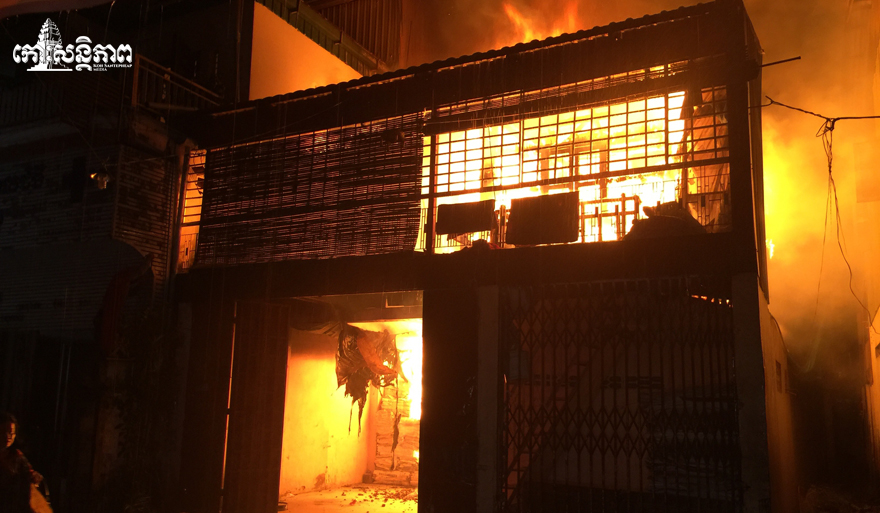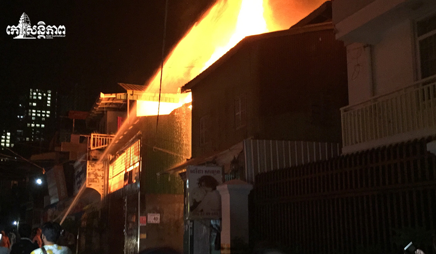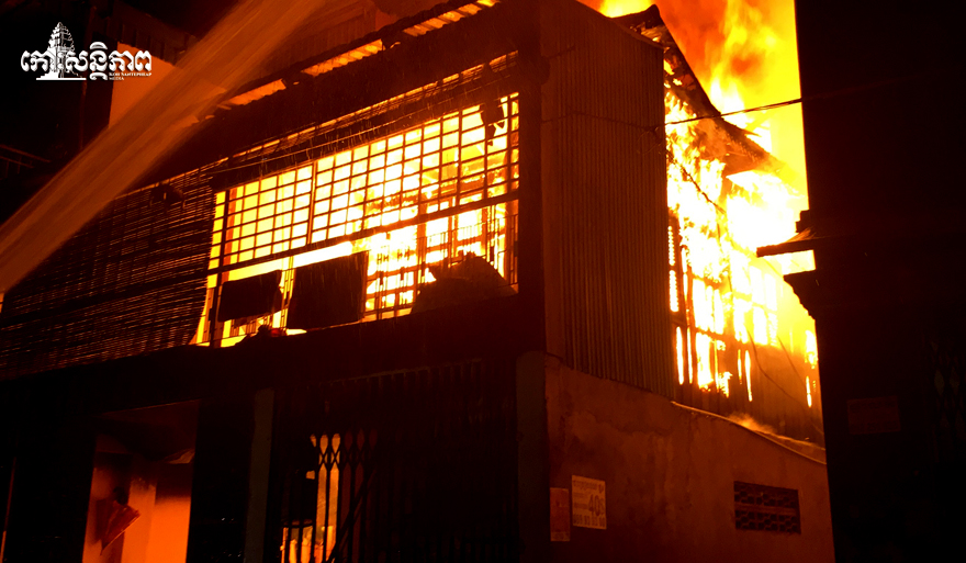 រាជធានីភ្នំពេញ ៖ ផ្ទះលក់សំបកបាវធ្វើអំពីឈើប្រក់សង្ក័សីមួយខ្នង ខណៈម្ចាស់កំពុងលង់លក់ក្នុងដំណេក ស្រាប់តែឆ្លងចរន្តអគ្គិសនីឆេះស្ទើរតែទាំងស្រុង បង្កឱ្យមានការភ្ញាក់ផ្អើលកាលពីវេលាម៉ោង១រំលងអធ្រាត្រ ឈានចូលថ្ងៃទី៧ ឧសភា នៅផ្ទះលេខ៤៦២C មហាវិថីព្រះមុនីវង្សកែងនឹងផ្លូវលេខ៧០ ភូមិ១២ សង្កាត់ទន្លេបាសាក់ ខណ្ឌចំការមន ។