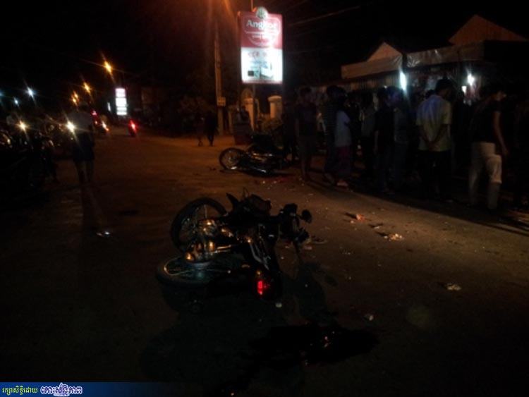 ខេត្តស្ទឹងត្រែង ៖ យុវជន៣នាក់បានរងរបួសខណៈបើកម៉ូតូជ្រុលបុកពេញទំហឹងនៅវេលាម៉ោង៦និង១៦នាទីល្ងាចថ្ងៃទី៤ មេសា ស្ថិតក្នុងភូមិលើ សង្កាត់ស្រះឫស្សី ក្រុងស្ទឹងត្រែង ទល់មុខហាងលក់គោដុតរស្មីពេជ្រ ។សាក្សីនិយាយថា ម៉ូតូឌ្រីមសេ១២៥ ស៊េរី២០១២ ពណ៌ខ្មៅ អត់ស្លាកលេខ ជិះគ្នា២នាក់មកទិញសាច់គោដុត បន្ទាប់ពីទិញរួចបានជិះម៉ូតូបត់ត្រឡប់ក្រោយក្នុងល្បឿនលឿន ក៏ជ្រុលទៅបុកម៉ូតូវ៉េវពណ៌ក្រហម ពាក់ស្លាកលេខស្ទឹងត្រែង 1A-3921 ជិះម្នាក់ឯងក្នុងគោលដៅពីកើតទៅលិចបញ្ច្រាសទិសគ្នាពេញទំហឹង បណ្តាលឱ្យយុវជនទាំង៣នាក់ដេកដួលក្នុងសភាពធ្ងន់ធ្ងររៀងខ្លួន រថយន្តសង្គ្រោះដឹកទៅមន្ទីរពេទ្យ ។