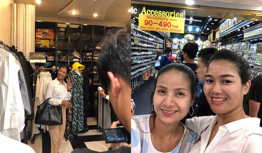 ខ- ចូលទិញឥវ៉ាន់នៅផ្សារតំបន់ ប្រាទូណាម (Pratunam Markets) ៖ អ្នកអាចទិញសំលៀកបំពាក់ និងគ្រឿងអលង្ការគ្រប់ប្រភេទ ក្នុងតម្លៃថោកជាងនៅតាមទីផ្សារទំនើបជាច្រើន។ ហេតុដូច្នេះហើយផ្សារលក់ដុំ និងលក់រាយនៅ Pratunam គឺទាក់ទាញបានអ្នកទេសចរណ៍ជាច្រើនទៅជាវឥវ៉ាន់ ។ នៅក្នុងតំបន់ប្រាទូណាម គឺជាតំបន់ទេសចរដ៏ពេញនិយមជាងគេនៅបាងកក ជាពិសេសអាជីវករខ្មែរតែងតែទៅយកទំនិញនៅផ្សារប្រាទូណាម ។