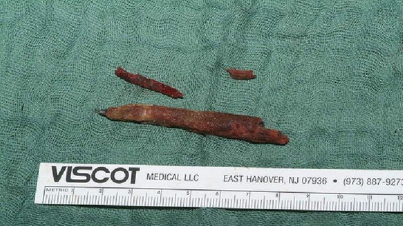វេជ្ជបណ្ឌិតជនជាតិអាល្លឺម៉ង់ឱ្យដឹងថា អ្នកជំងឺជនជាតិអាហ្វហ្គានីស្ថាន អាយុ២៤ឆ្នាំម្នាក់ ឈឺក្បាលរាលដាលដល់ភ្នែក និងហៀរសំបោរអស់រយៈពេល១៥ឆ្នាំ លុះទៅឱ្យគ្រូពេទ្យពិនិត្យឃើញមានខ្មៅដៃមួយដើមជាប់ក្នុងក្បាល ។គ្រូពេទ្យឱ្យអ្នកជំងឺទៅថតស្គែនក្បាល ហើយឃើញមានខ្មៅដៃប្រវែងប្រហែល១០សង្ទីម៉ែត្រ ដូច្នេះហើយទើបធ្វើឱ្យច្រមុះ និងភ្នែកខាងស្តាំឈឺចាប់ ។