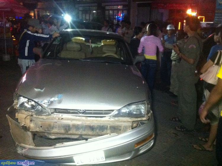 រាជធានីភ្នំពេញ ៖ រ៉ឺម៉កម៉ូតូ ១គ្រឿង បើកដោយបុរសម្នាក់ ត្រូវរថយន្តកាមរីគូទហើម ពណ៌ស្ករ ១គ្រឿង ពាក់ស្លាកលេខ ភ្នំពេញ 2C-3708 បើកបុកផ្ងារជើងច្រងាង កាលពីវេលាម៉ោង ២១ និង ៣០នាទីយប់ ថ្ងៃទី០៤ មិថុនា ២០១៣ នៅចំណុចមុខសណ្ឋាគារភ្នំពេញ តាមបណ្តោយមហាវិថីព្រះមុនីវង្ស ក្នុងសង្កាត់ស្រះចក