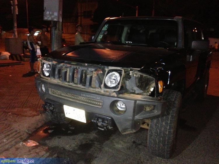 រាជធានីភ្នំពេញ ៖ រថយន្តហាំមើ ពណ៌ខ្មៅ ខណៈបើកឆ្លងផ្លូវត្រូវរថយន្តតាកូម៉ា បុកចំពីមុខពេញទំហឹងបណ្តាលឱ្យបាក់កាង ហើយបើករត់បាត់ស្រមោល កាលពីវេលាម៉ោង១០និង៣០នាទីយប់ ថ្ងៃទី៤ មិថុនា តាមបណ្តោយផ្លូវលេខ១៥ កែងផ្លូវលេខ៩២ ក្នុងសង្កាត់បឹងកក់ទី២ ខណ្ឌទួលគោក ។