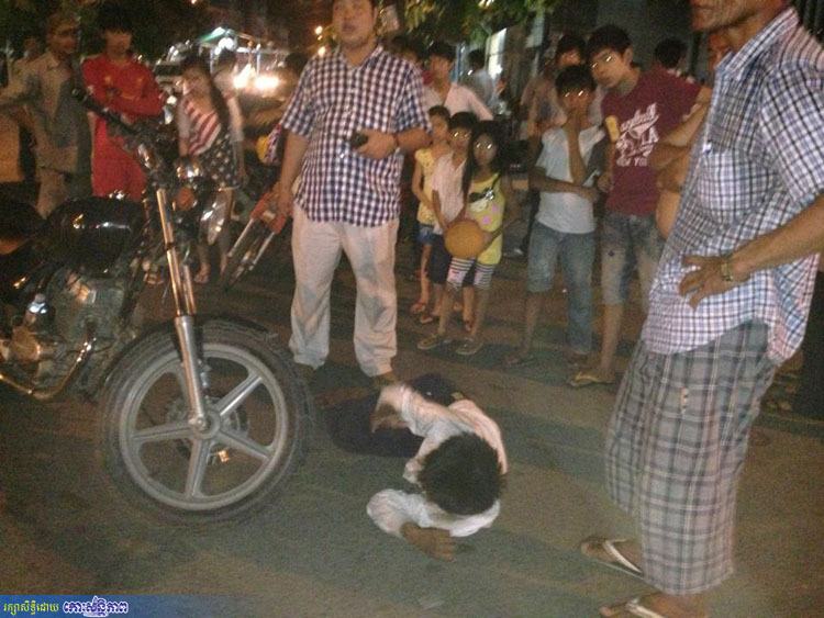 រាជធានីភ្នំពេញ ៖ បុរសម្នាក់អាយុប្រហែល ២៨ឆ្នាំ ធ្វើពុតជាដួលបែកពពុះមាត់ ដើម្បីឱ្យប្រជាពលរដ្ឋអាណិតឱ្យលុយ ដែលហេតុការណ៍នេះ បង្កឱ្យមានភាពអាណាធិបតេយ្យតាមដងផ្លូវ កាលពីវេលាម៉ោង ១៩ និង ១០នាទី យប់ថ្ងៃទី០៥ មិថុនា ២០១៣ នៅលើផ្លូវ១៨៤ កែងផ្លូវ១៥ ទល់មុខទីស្នាក់ការសង្កាត់ផ្សារកណ្តាលទី១ ៕