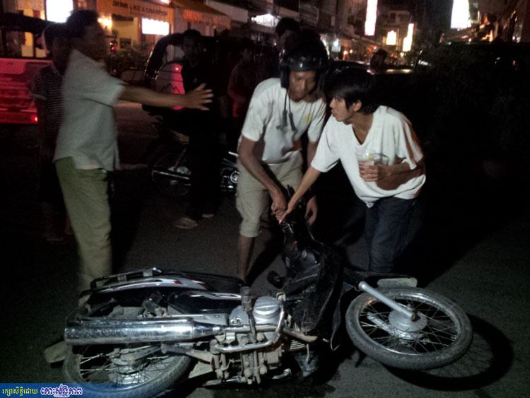 រាជធានីភ្នំពេញ ៖ រថយន្តហ្វតមួយបាំងកន្លះពណ៌ខ្មៅ ១គ្រឿង ពាក់ស្លាកលេខ ភ្នំពេញ 2W-6404 បើកបរដោយបុរសម្នាក់ក្នុងទិសដៅពីកើតទីលិច បានបុកជាមួយម៉ូតូ C125 ពណ៌ខ្មៅ ១គ្រឿង ពាក់ស្លាកលេខ ភ្នំពេញ 1AO-3923 បណ្តលឱ្យបុរសម្នាក់ជាអ្នកបើកបររងរបួសធ្ងន់ កាលពីវេលាម៉ោង ២២ និង ១០នាទី យប់ថ្ងៃទី០៥ មិថុនា ២០១៣